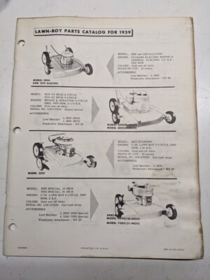 Lawn-Boy Parts Manual List 1959 1210 2210 4210 3050 7050 7210 1051 Tms-1-Lb