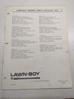 Lawn-Boy Parts Manual List Mower 1978 8237Ae R8237 5277 R7268 6257