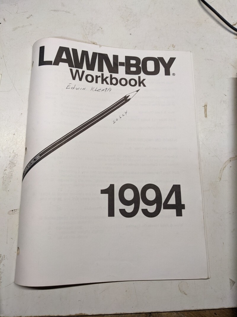 Lawn Boy Workbook 1994 Training Service Sales Test Questions