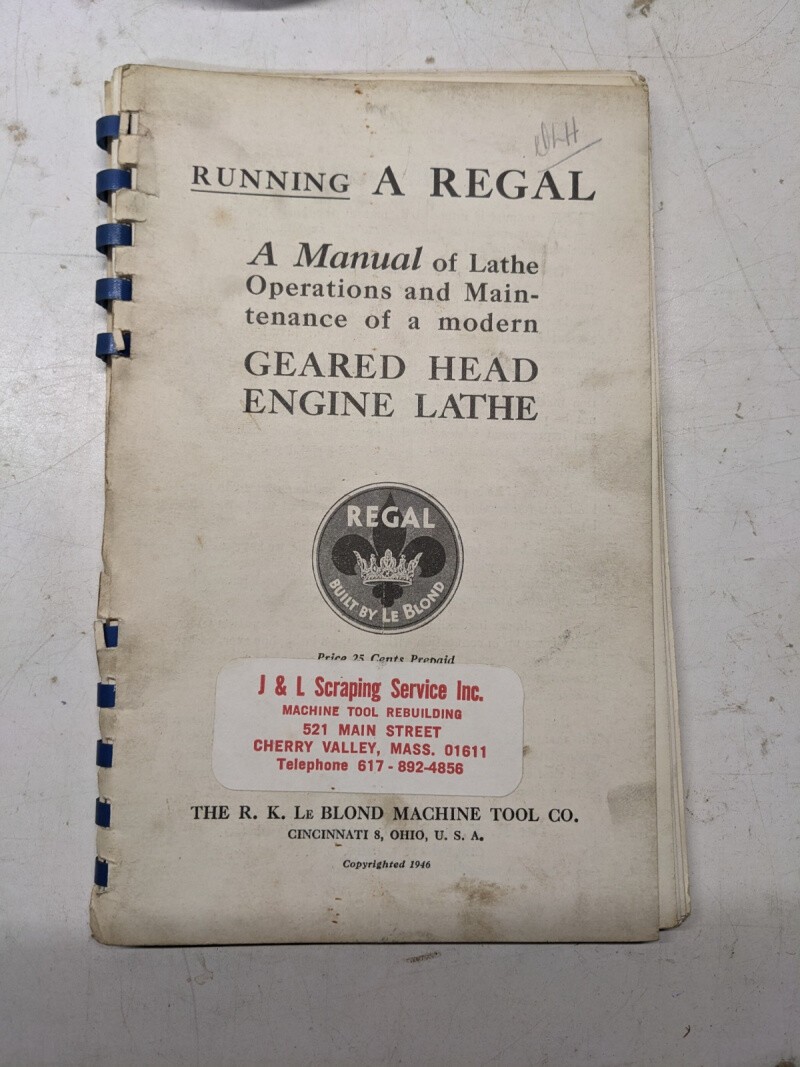 Le Blond Machine Running A Regal Manual Operation & Maintenance Geared Head 1946