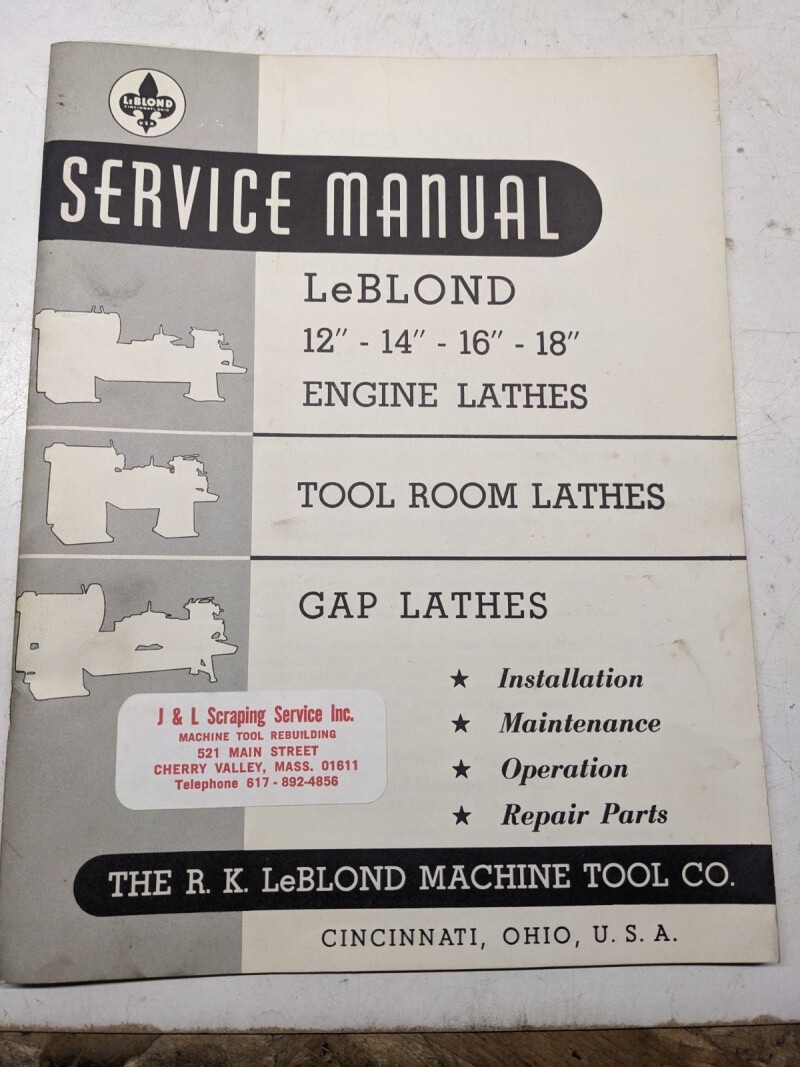 Leblond Lathe Service Manual Part List Book Catalog 12 14 16 18” Engine Tool Gap