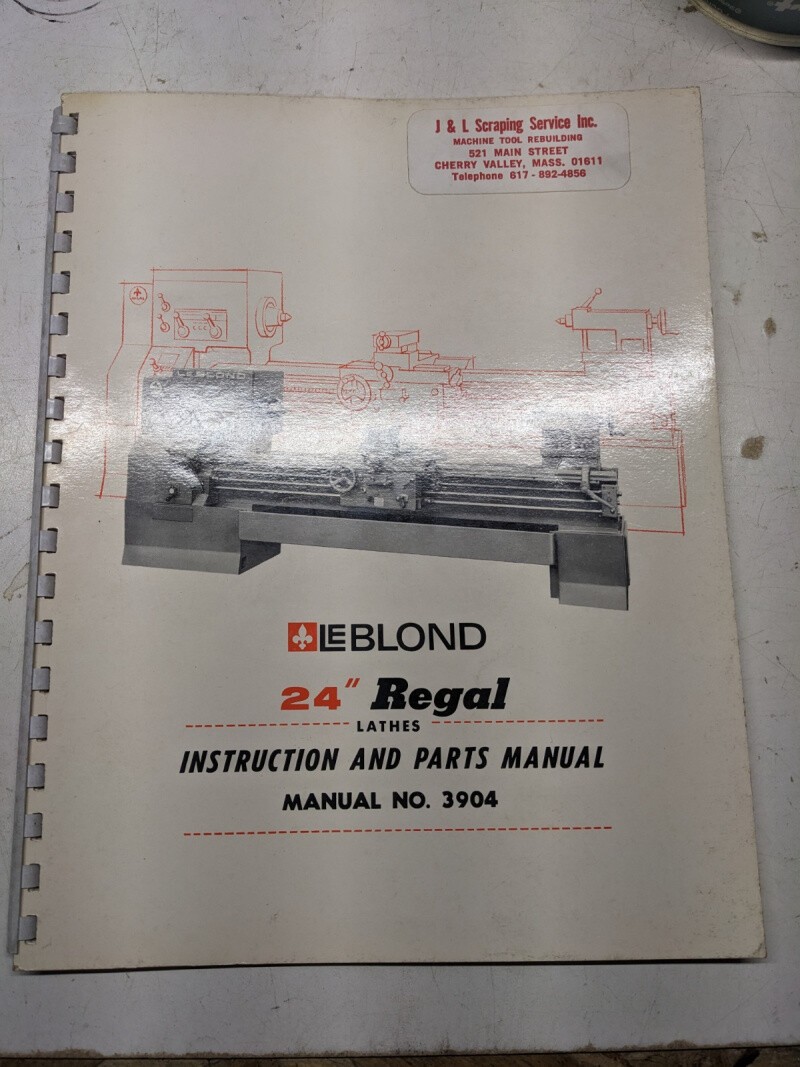 Leblond Lathes Instruction Manual Parts List Book Catalog 24” Regal #3904 1966