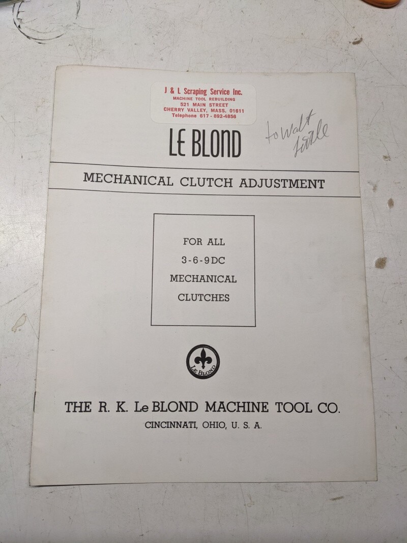 Leblond Mechanical Clutch Adjustment Manual Instructions 3 6 9 Dc
