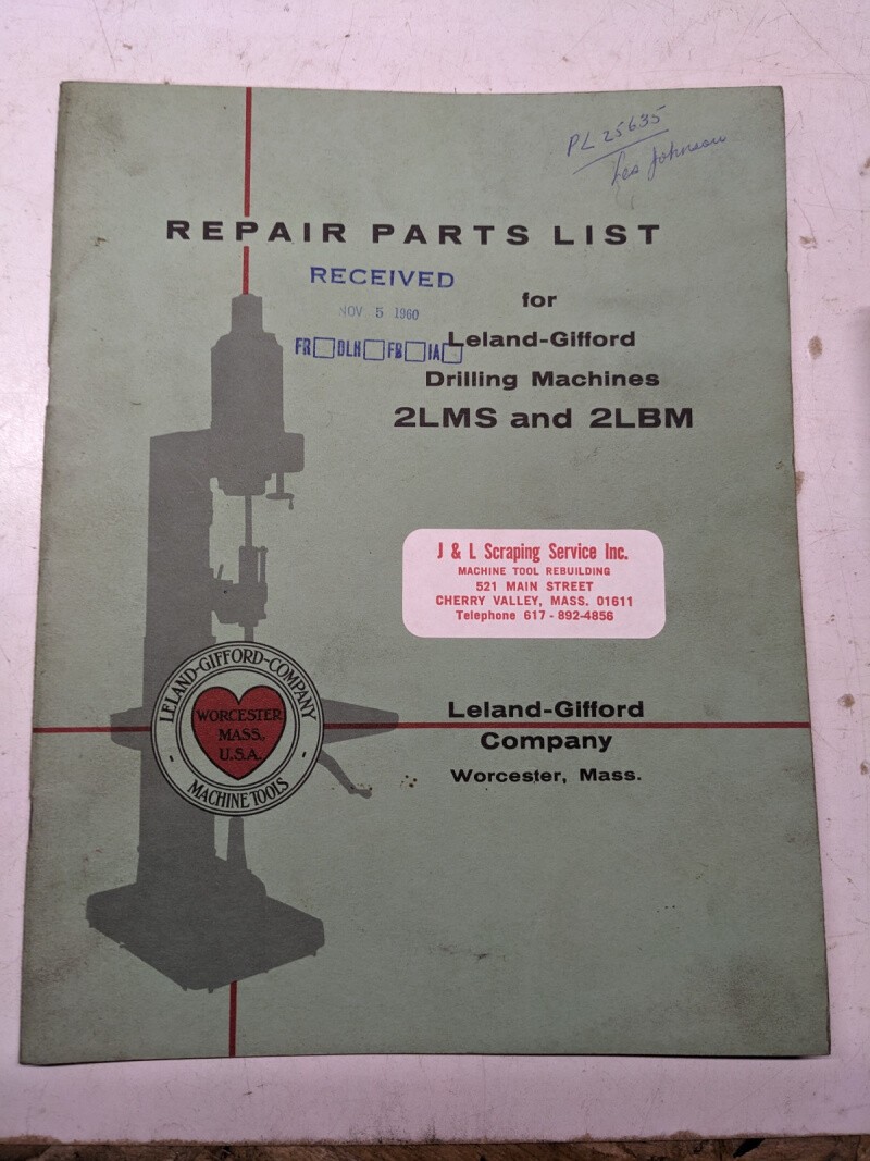 Leland Gifford Co Drilling Machine Repair Parts List Shop Book Manual 2Lms 2Lbm