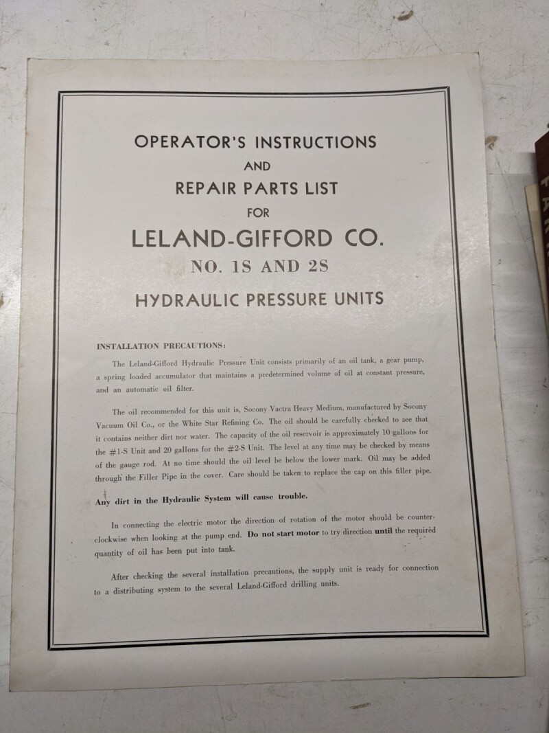 Leland Gifford Drilling Machine Operating Maintenance Parts List Manual #1S 2S