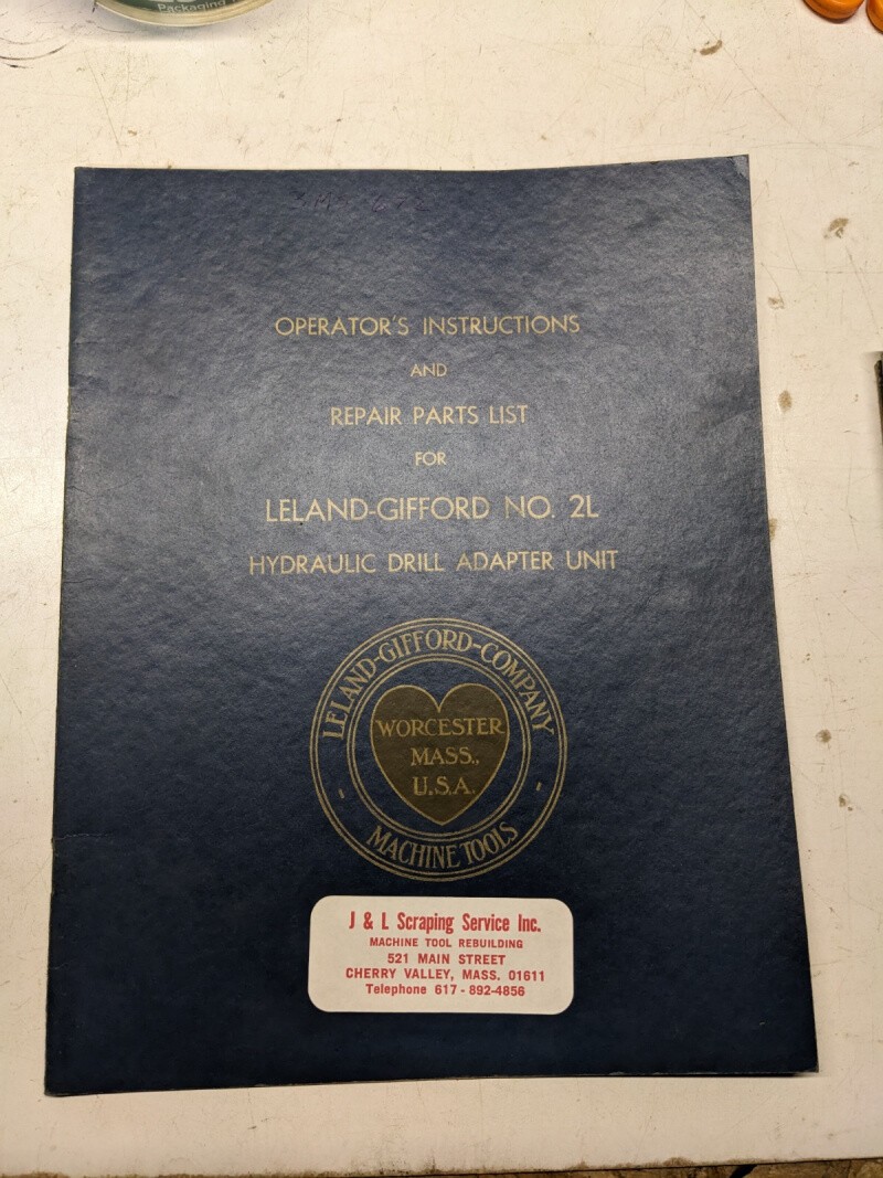 Leland Gifford Drilling Machine Operator’S Instruction Part List Manual #2L