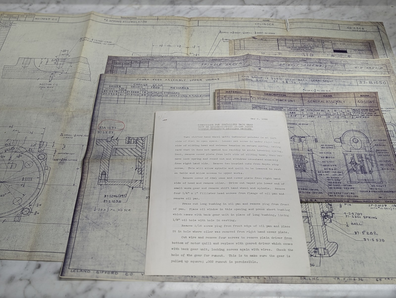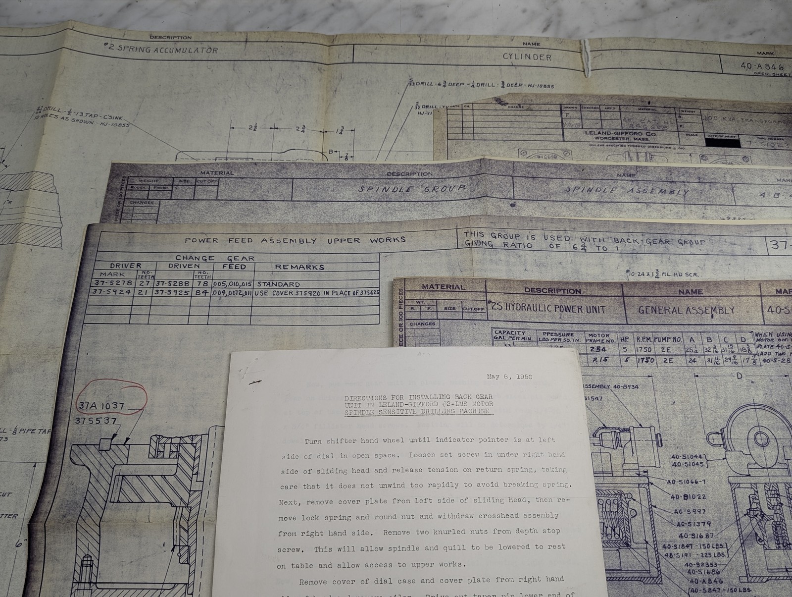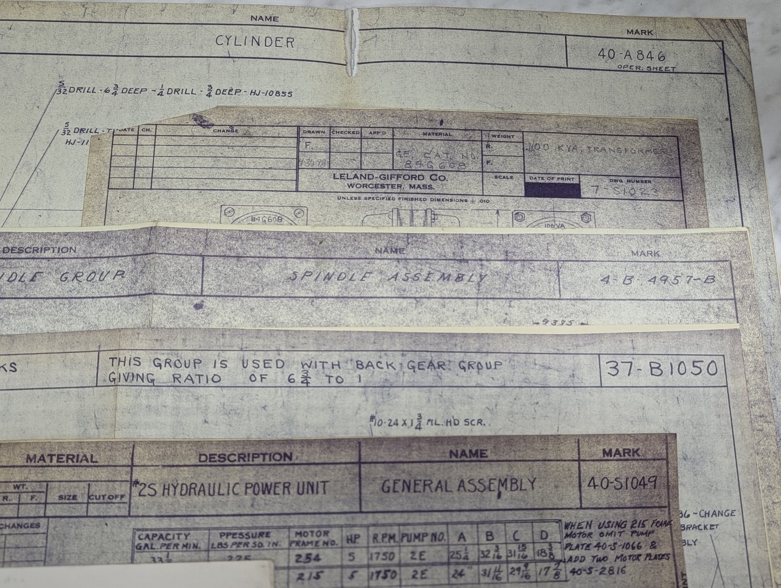 Leland Gifford Machine Tool 2S Drawing Diagrams Blue Prints Information Lot