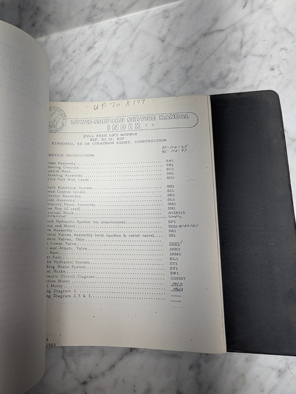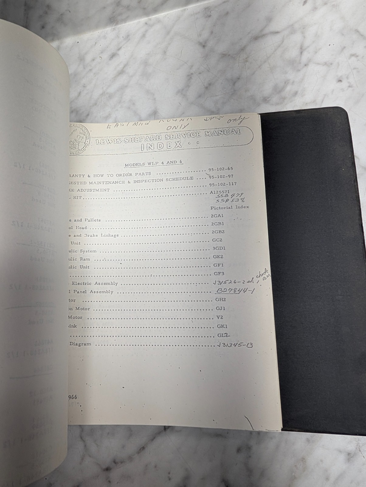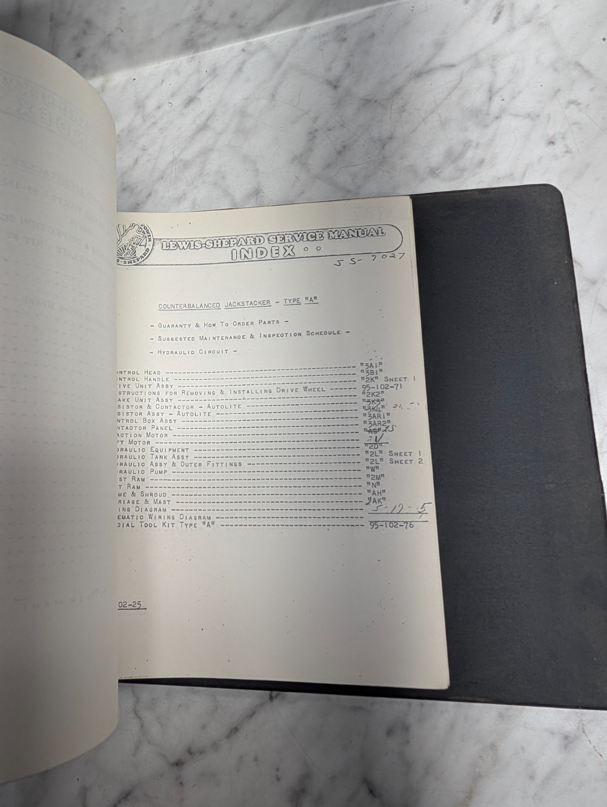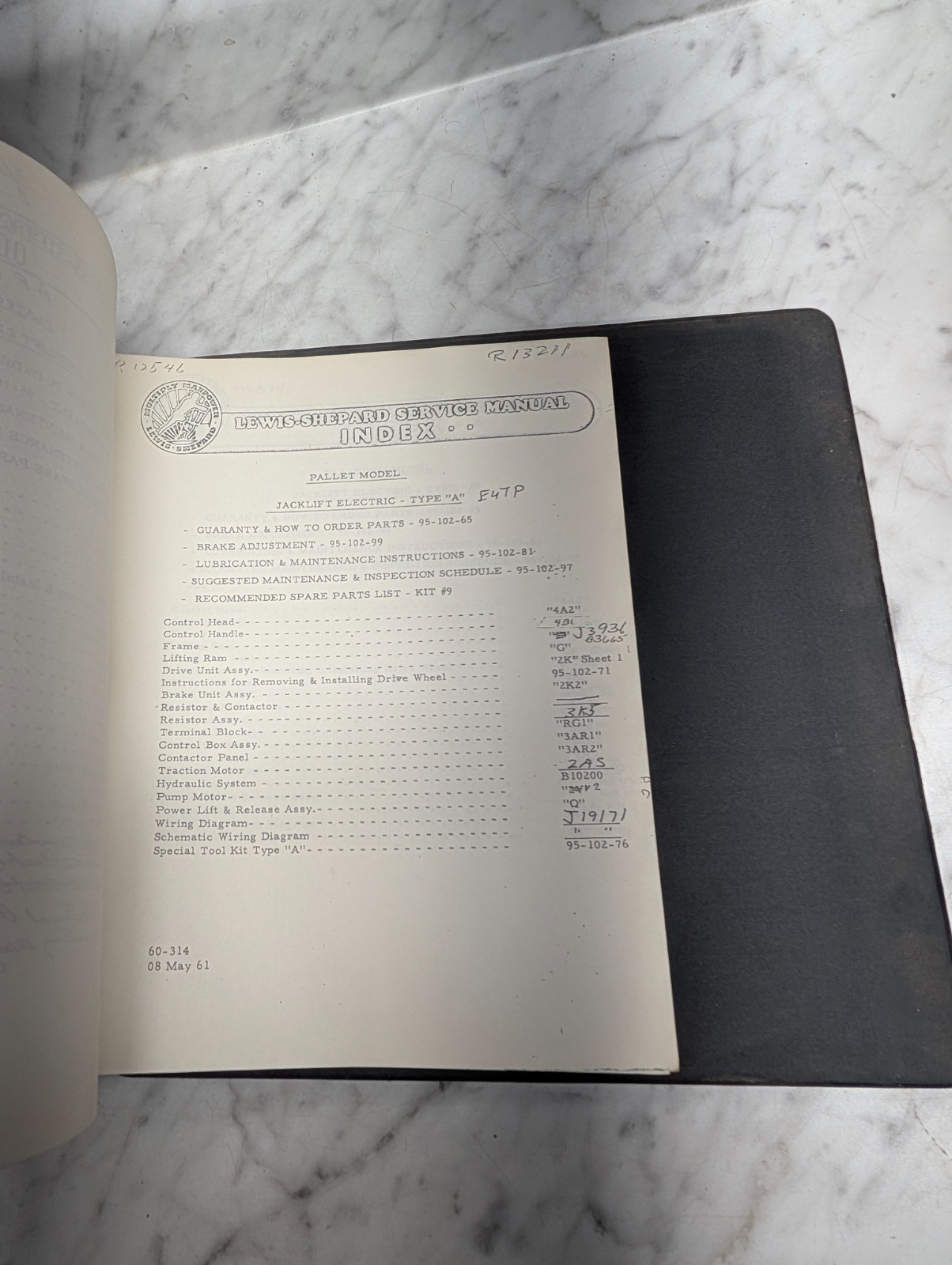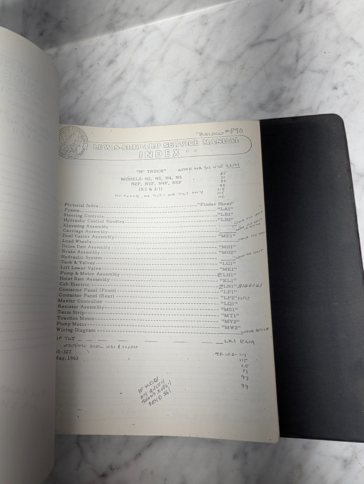Lewis Sheppard Fork Lift Trucks Service Manual Master Index Model Reference Book