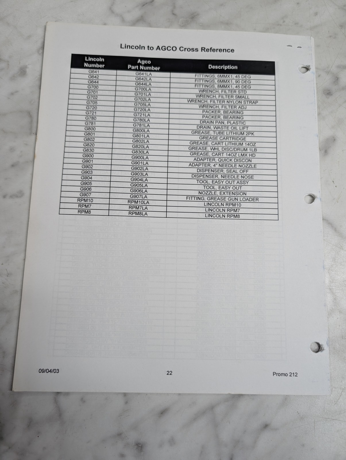 Lincoln Agco Cross Reference Promo Number Part Guide 212 2003