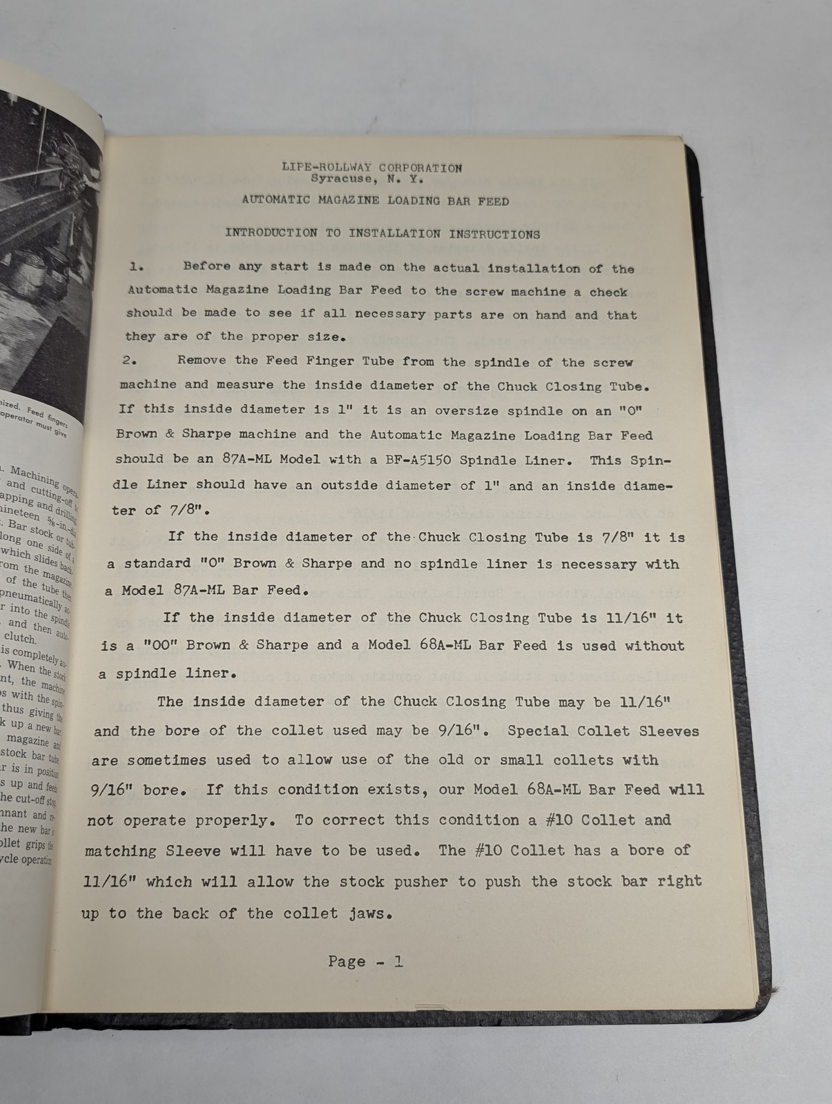 Lipe Rollway Bar Feeds Aml Automatic Magazine Loading Operator Service Manual
