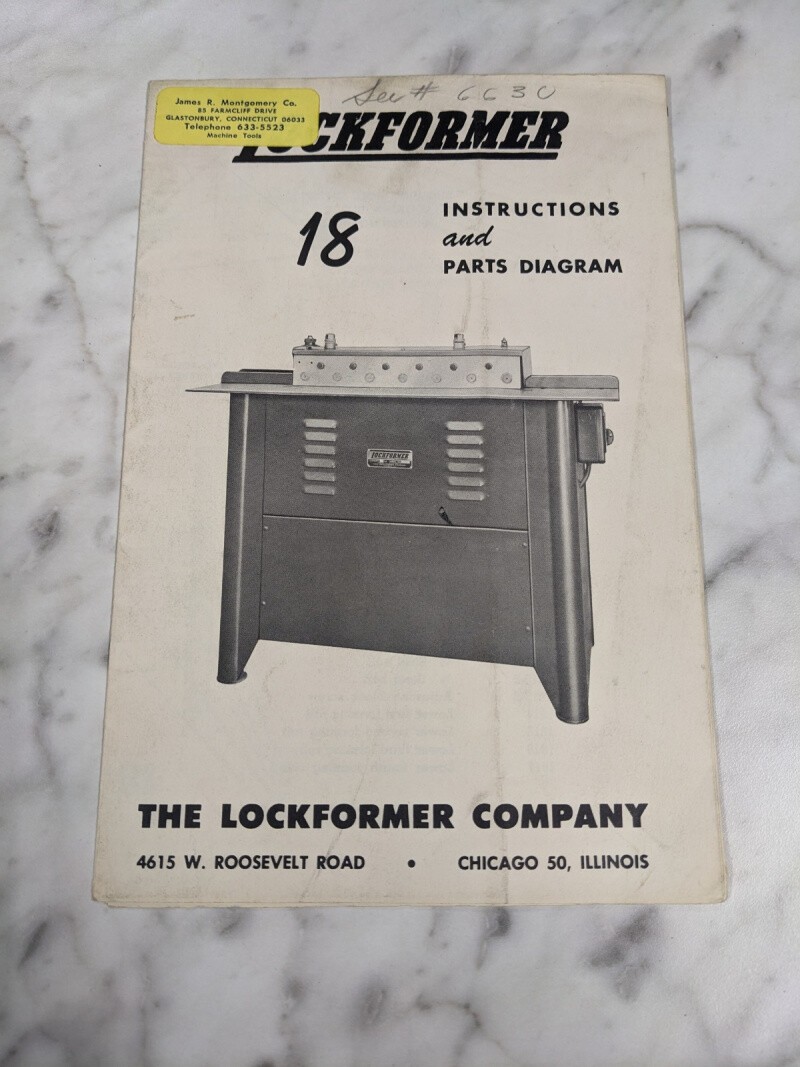 Lockformer Company Model #18 Instruction Operator Manual Parts List Diagram Book