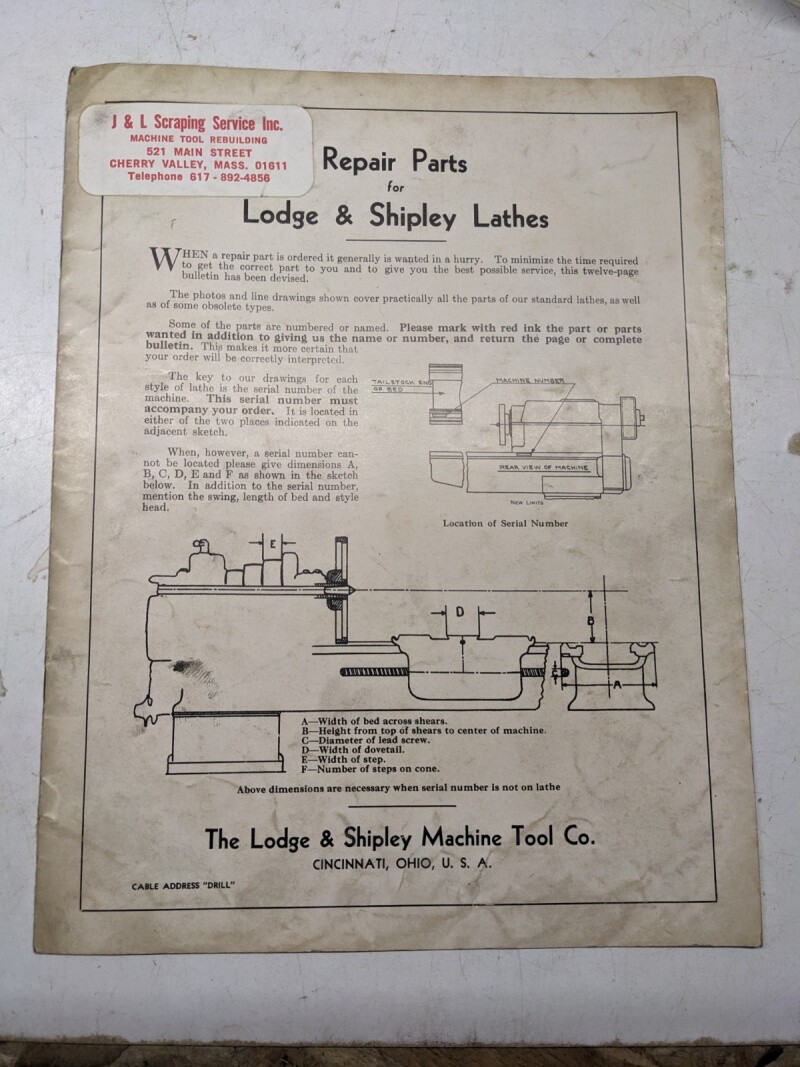 Lodge & Shipley Lathes Repair Parts List Manual Catalog Models Manufacturing