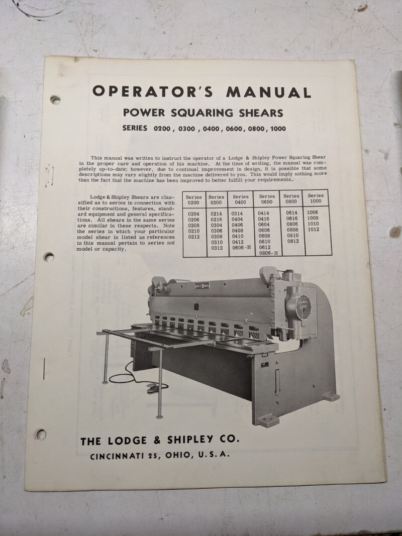 Lodge & Shipley Operator’S Manual Power Squaring Shears 0200-1000 Maintenance