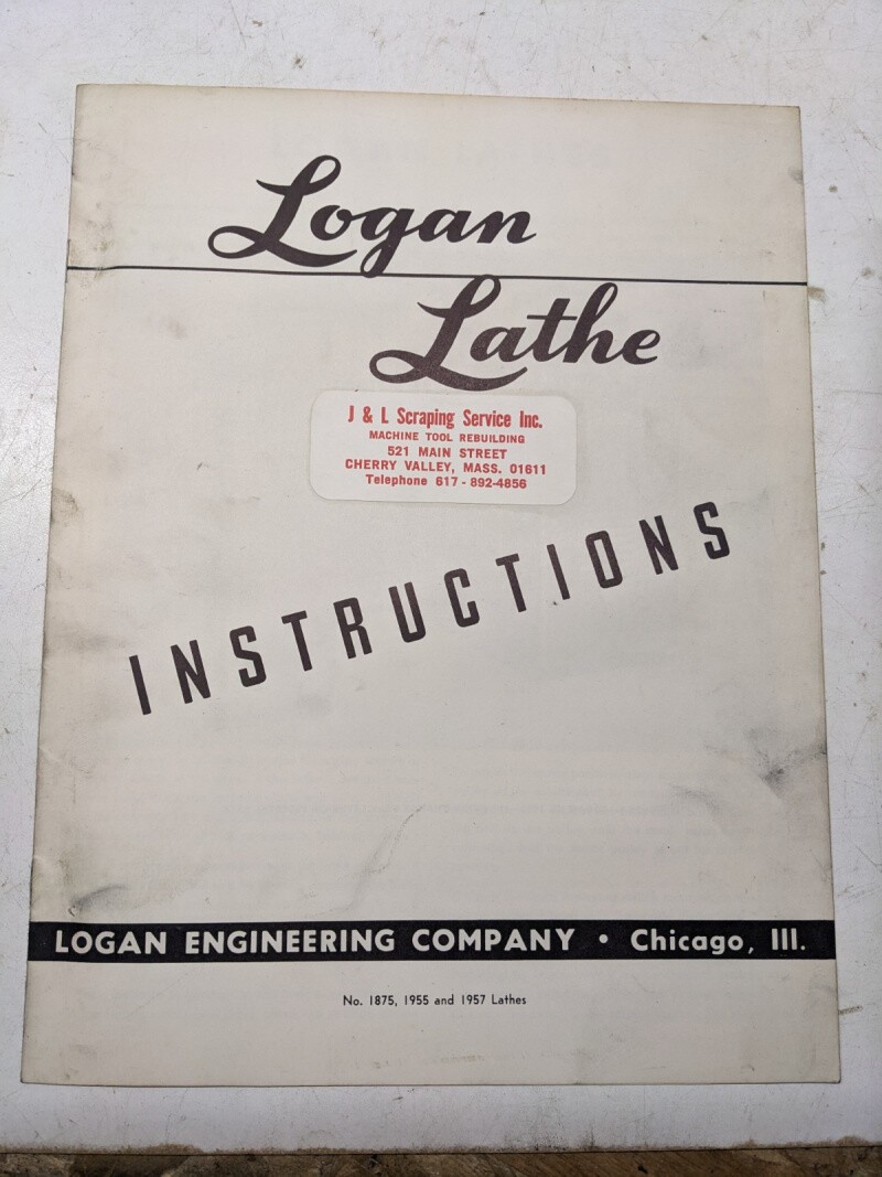 Logan Lathe Instructions Manual Model 1875 1955 1957 Shop Book Operation 1953