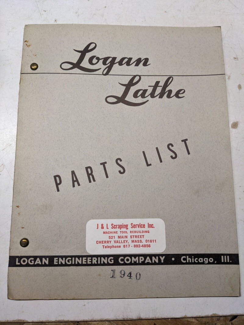 Logan Lathe Repair/Service Parts List Shop Book Manual Catalog #1940 1953