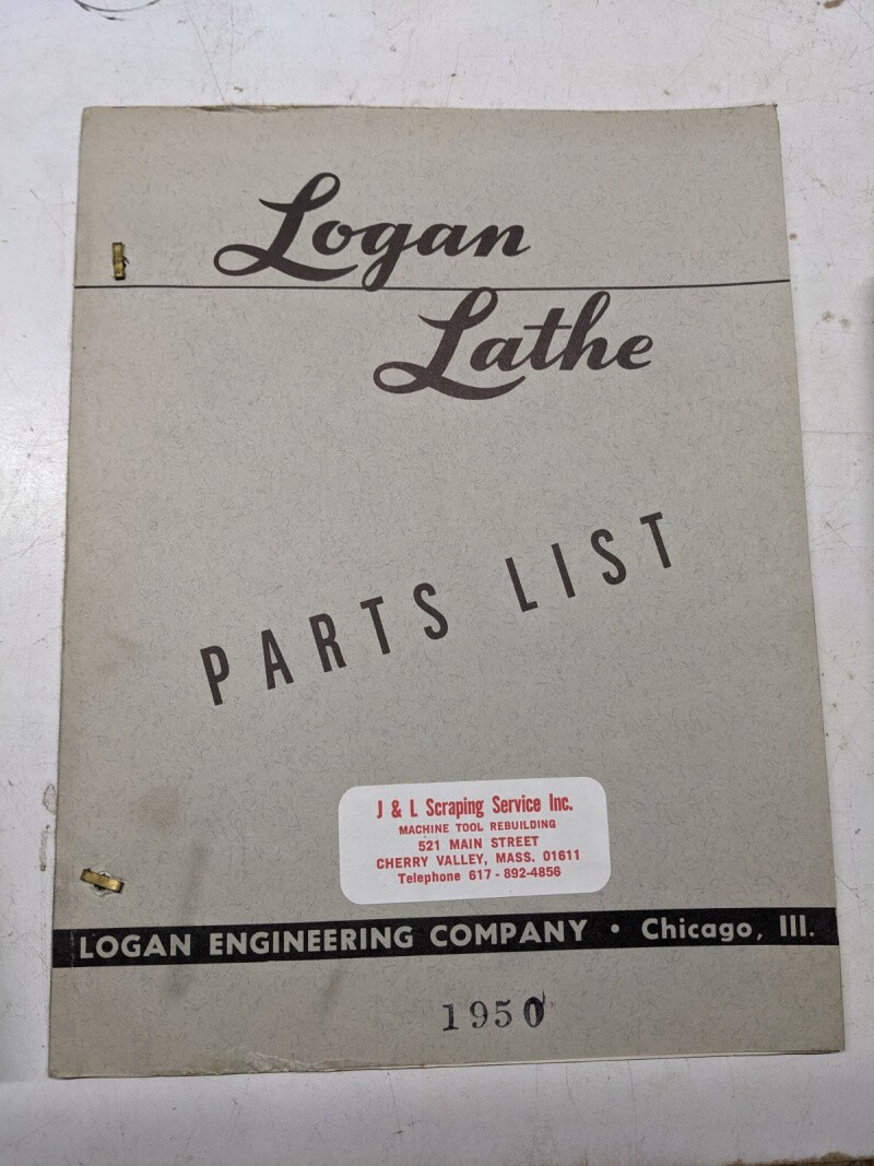 Logan Lathe Repair/Service Parts List Shop Book Manual Catalog #1950 1953