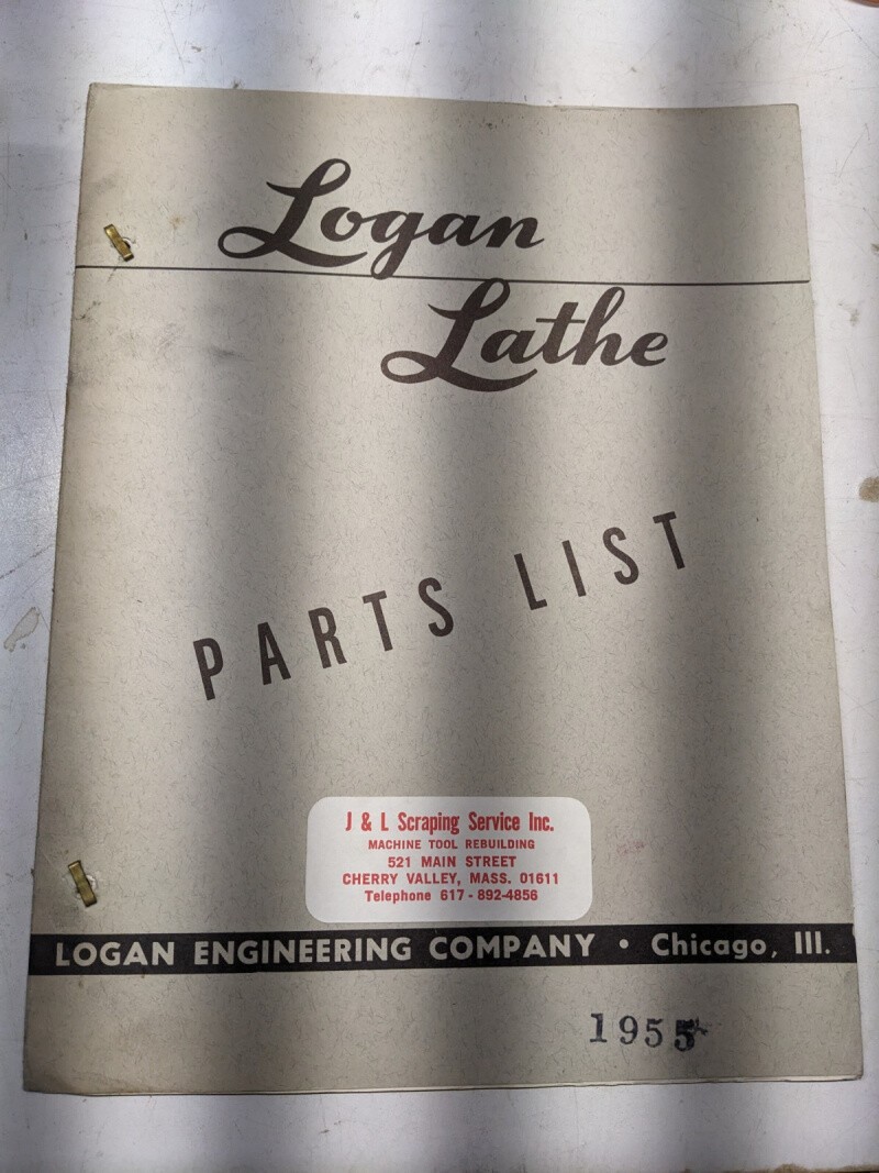 Logan Lathe Repair/Service Parts List Shop Book Manual Catalog #1955 1953