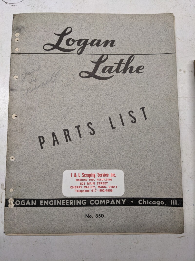 Logan Lathe Repair/Service Parts List Shop Book Manual Catalog #850 1944