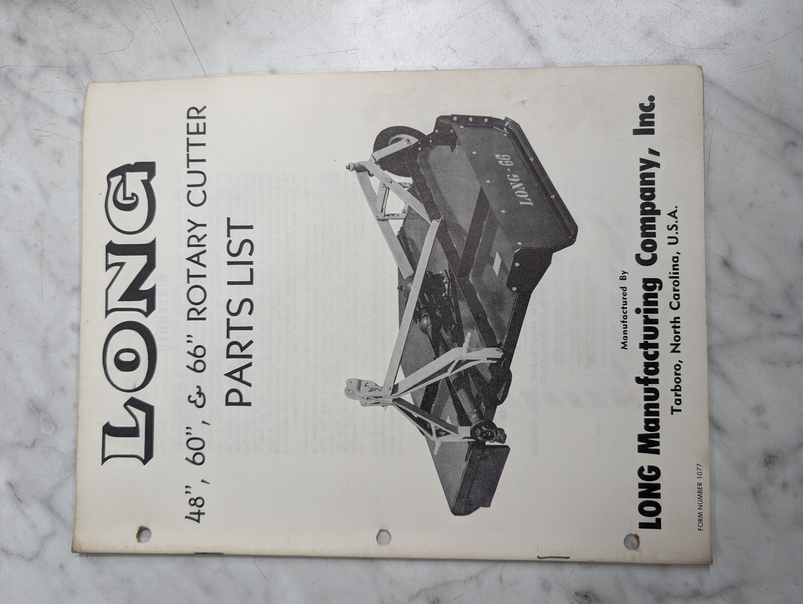 Long Parts List Book Manual Catalog Model 48 60 66” Rotary Cutter 1964