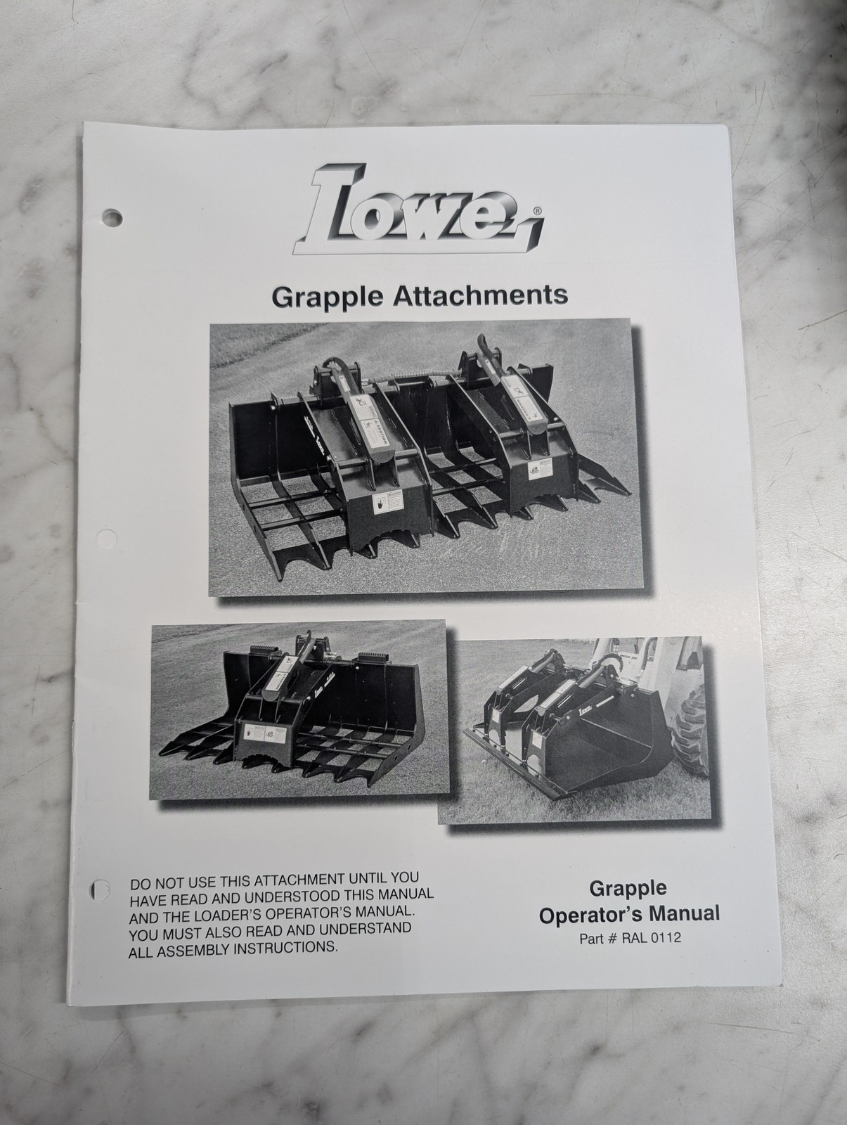 Lowe Operator’S Service Manual Parts List Book Grapple Attachment Ral 0112