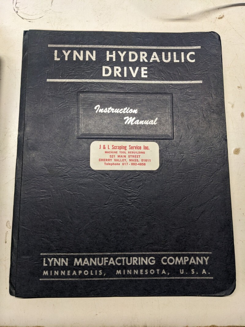 Lynn Hydraulic Drive Instruction Manual Operation Parts List Book 1955 Machine