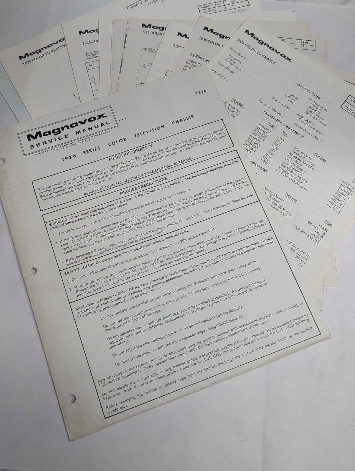 Magnavox Service Manual 1936 Series Color Television Chassis 7314 Information