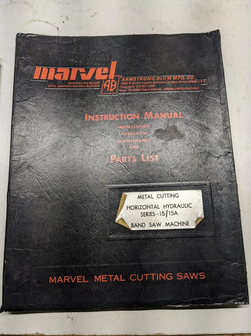 Marvel Instruction Manual Maintenance Operation Parts List Band Saw 15A Series