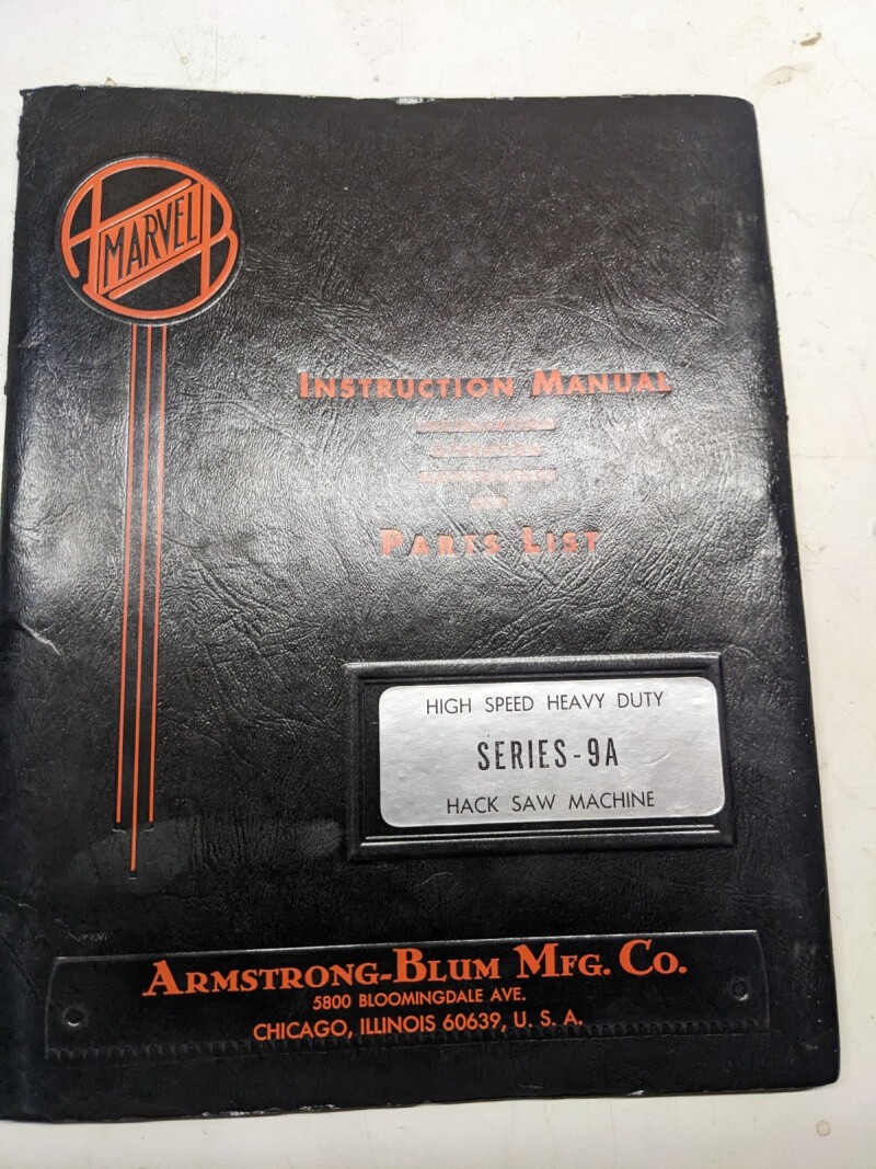 Marvel Instruction Manual Maintenance Operation Parts List Catalog Saw Series 9A