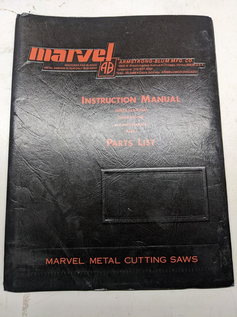Marvel Instruction Manual Maintenance Operation Parts List Hack Saw No 18 Series