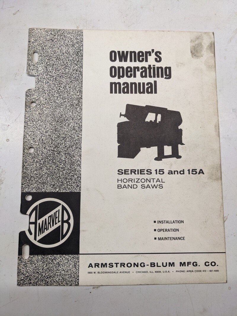 Marvel Owners Operating Manual Series 15A Band Saw Instruction Maintenance