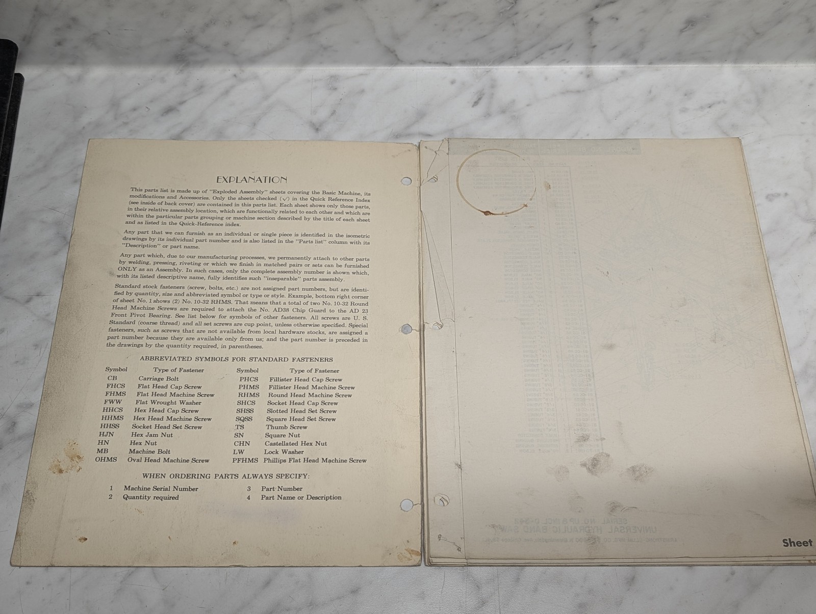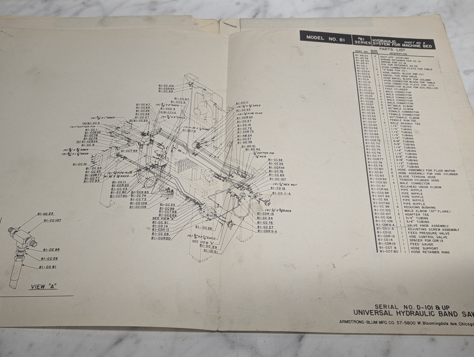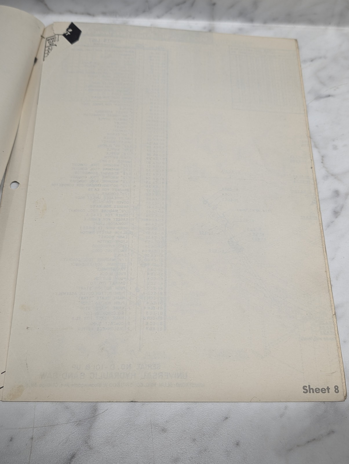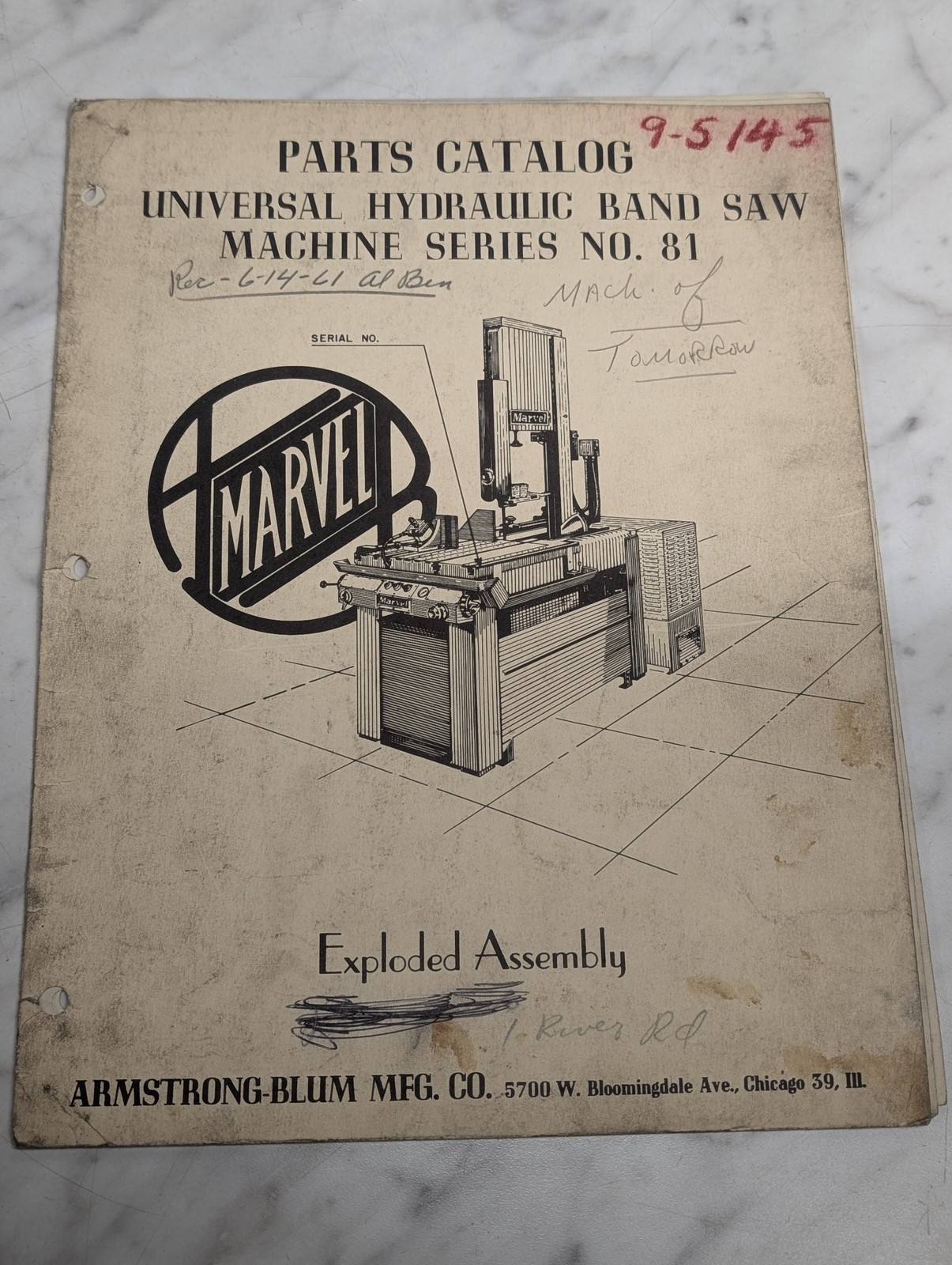 Marvel Parts Catalog Manual List Hydraulic Band Saw #81 ~ Missing Pages
