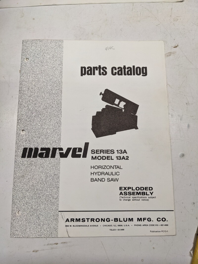Marvel Parts List Book Manual Catalog Series 13A Model 13A2 Band Saw Pc13-1 1983