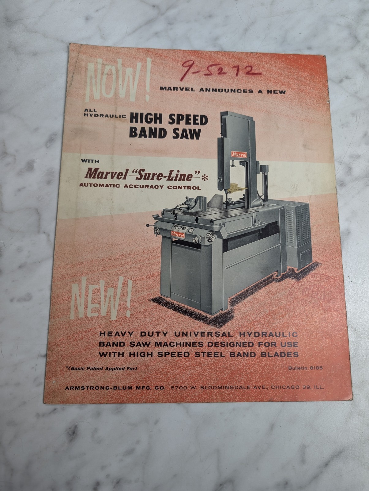 Marvel Saws Sales Brochure Literature Catalog #8185 High Speed Band Saw #81 81A