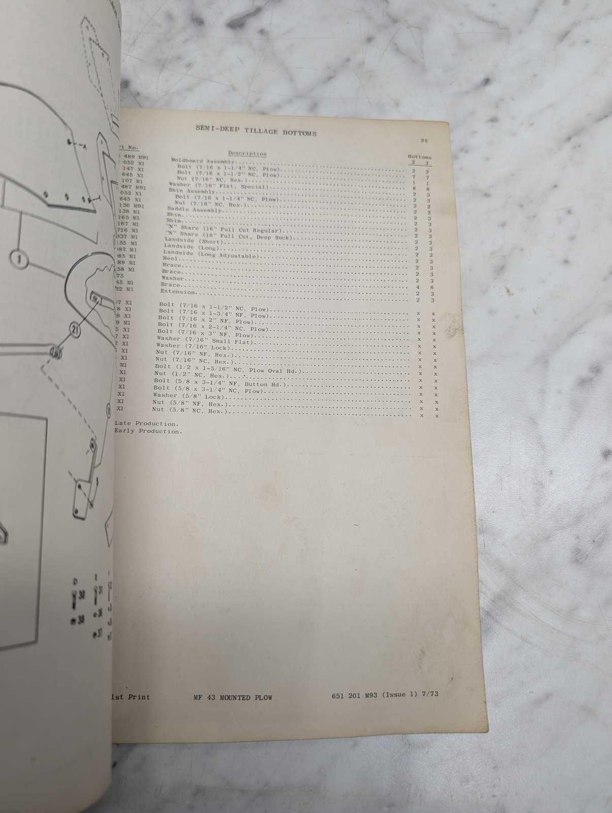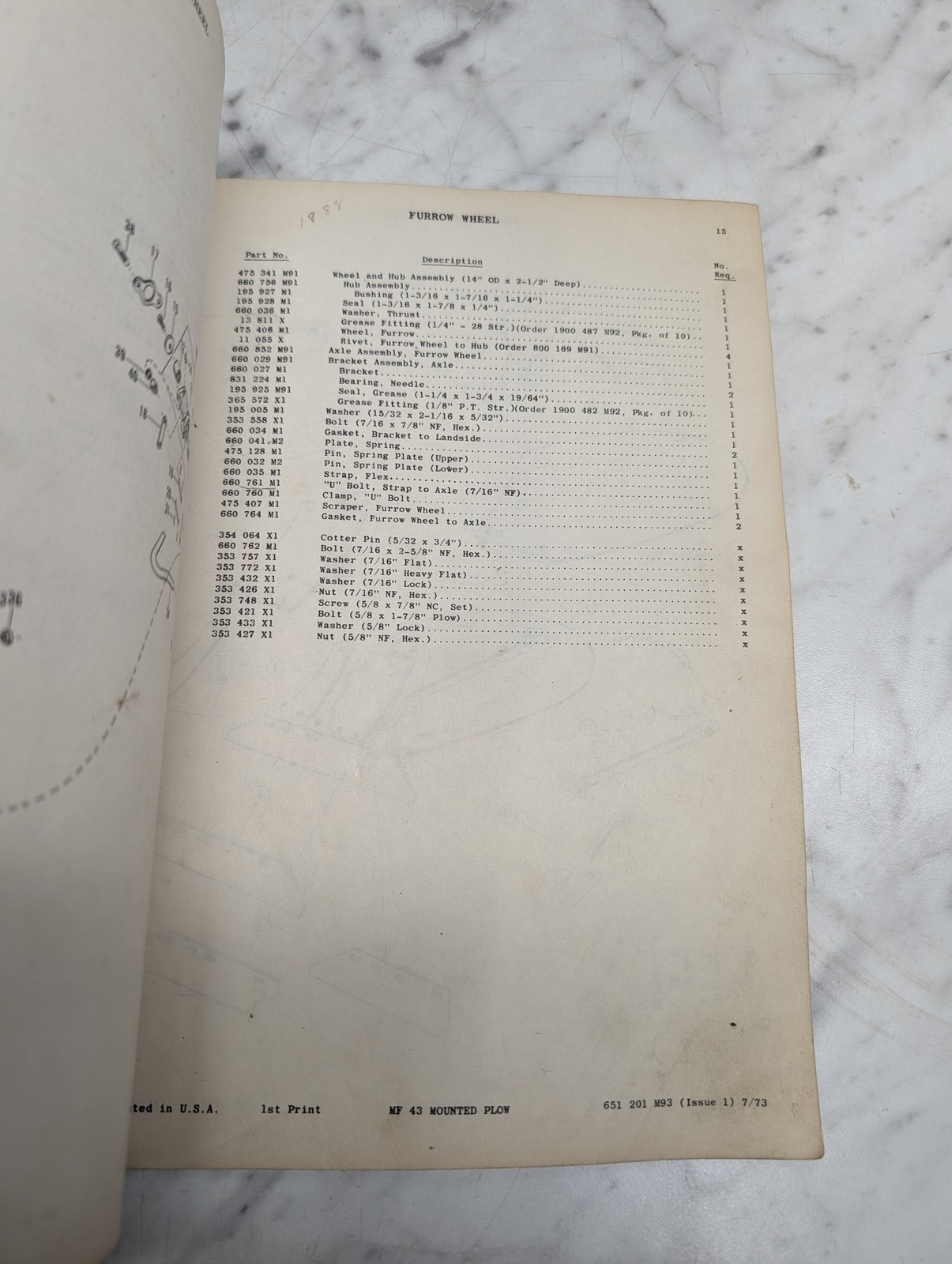 Massey Ferguson 43 Mounted Plow Form No 651 201 M93 Parts Manual List Catalog
