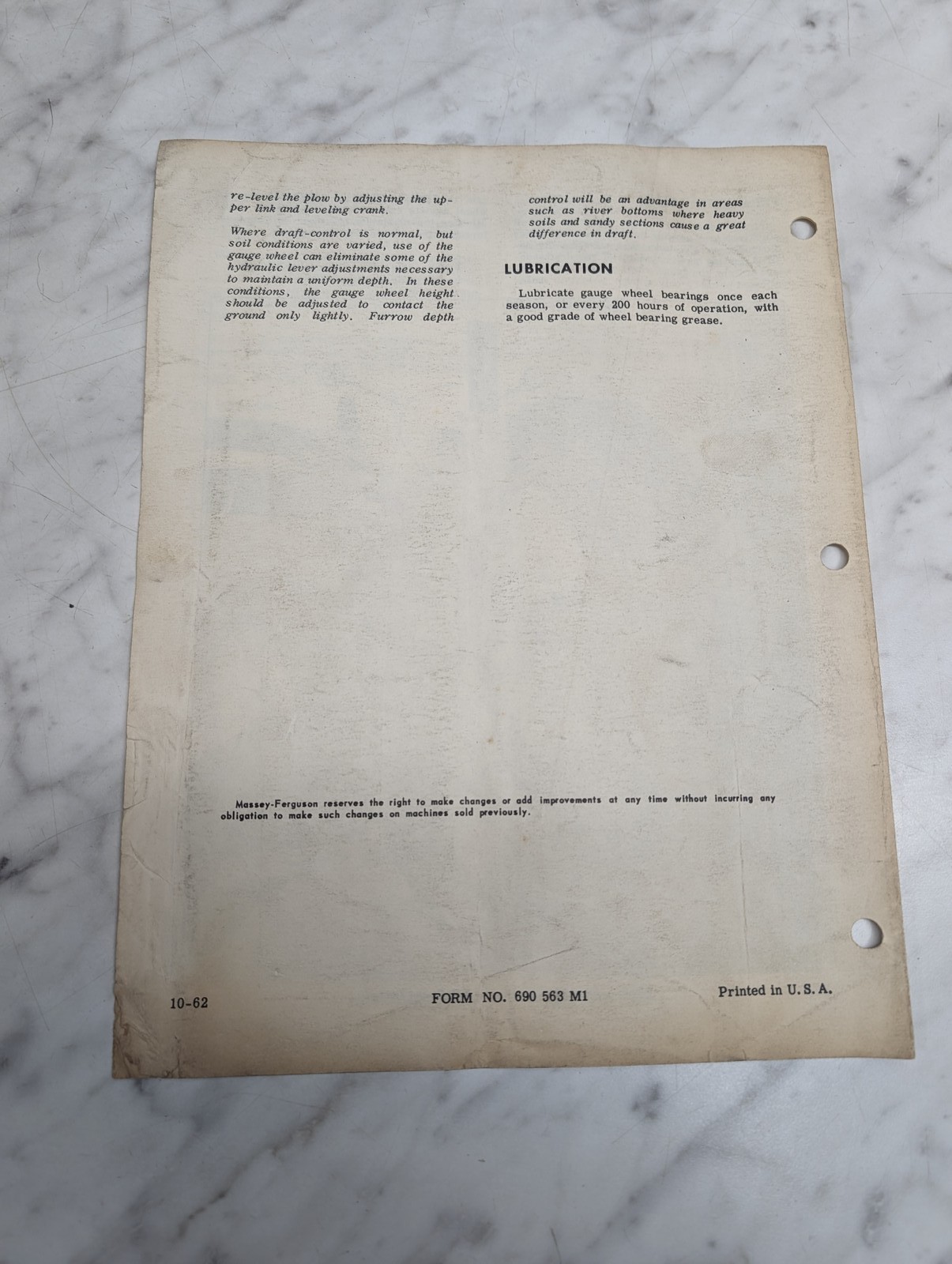 Massey-Ferguson 66 74 Gauge Wheel Attachment Operating Installation Instructions