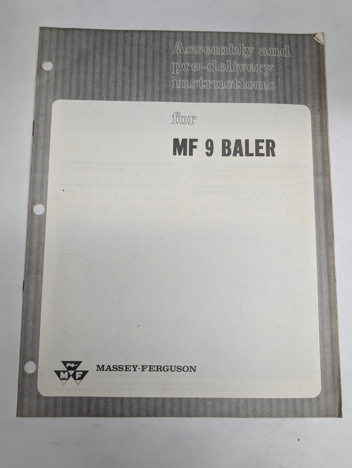 Massey Ferguson Assembly Instruction Predelivery Manual Mf 9 Baler