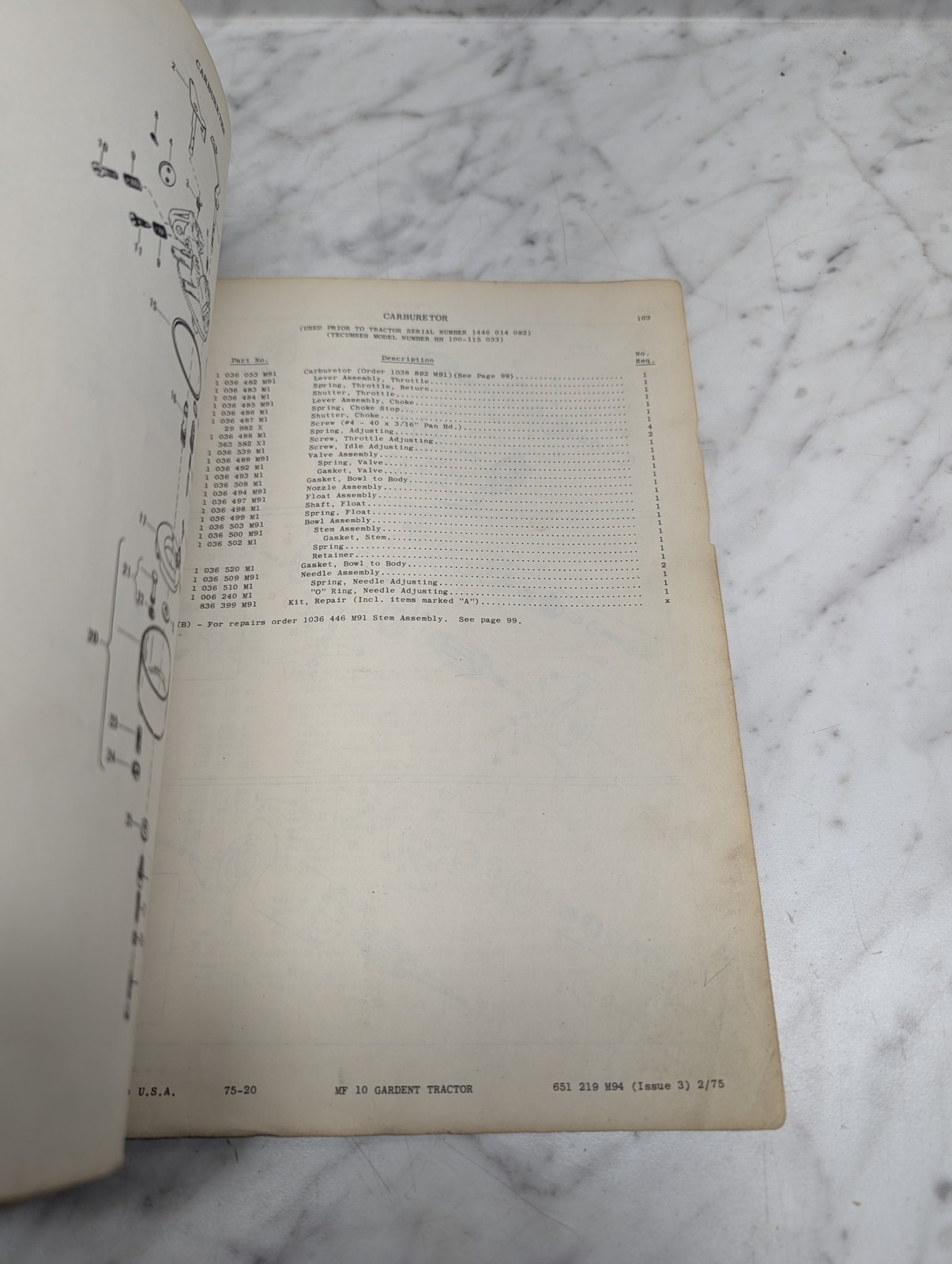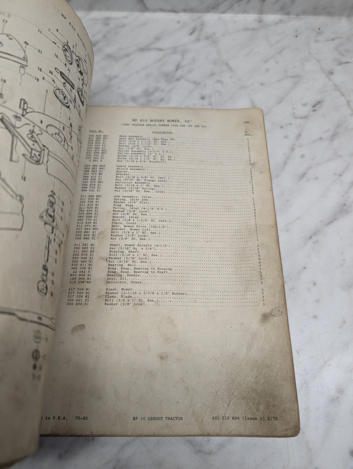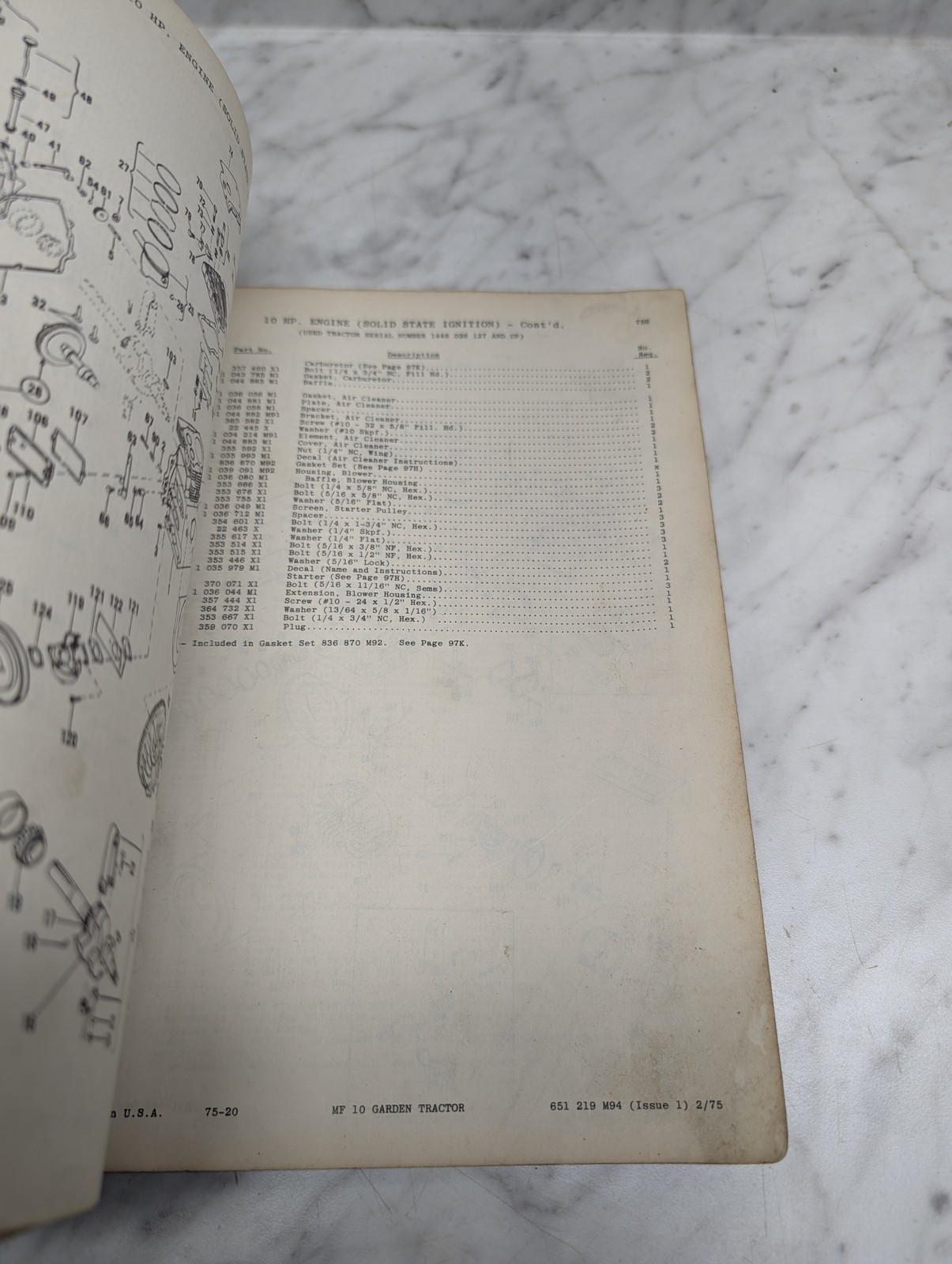 Massey Ferguson Mf 10 Garden Tractor Form No 651 219 M94 Parts Book Manual