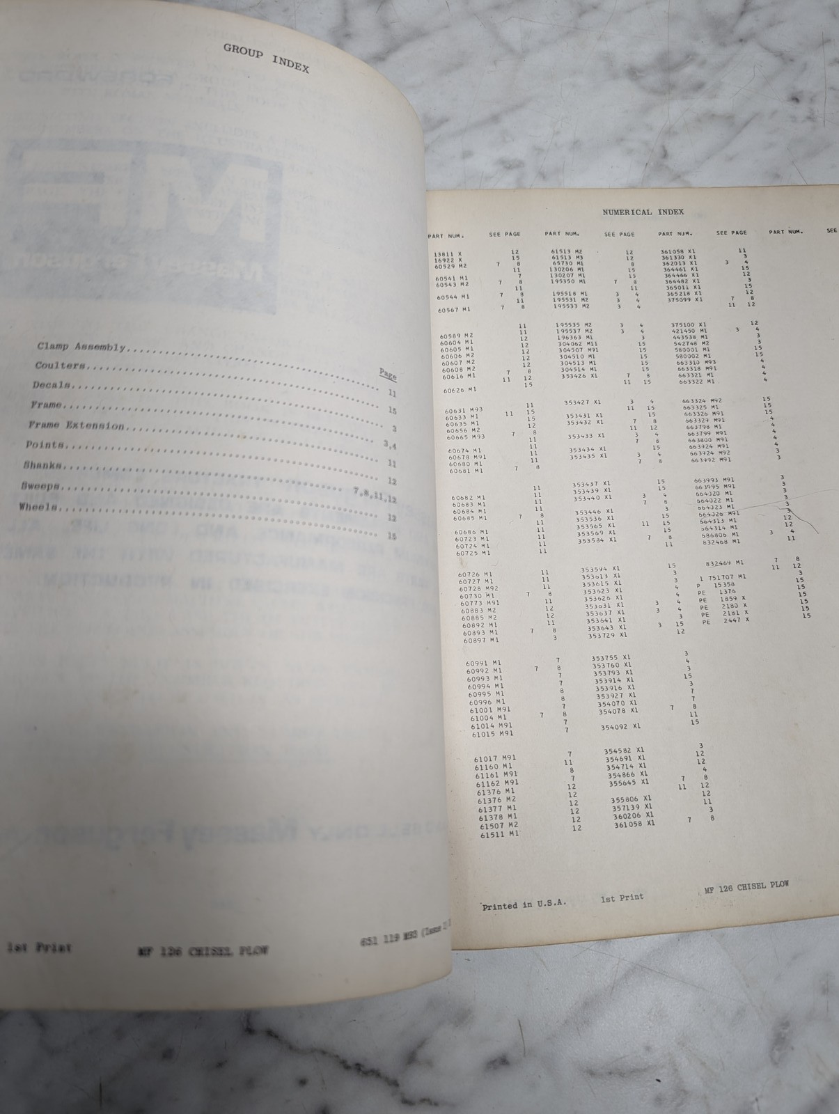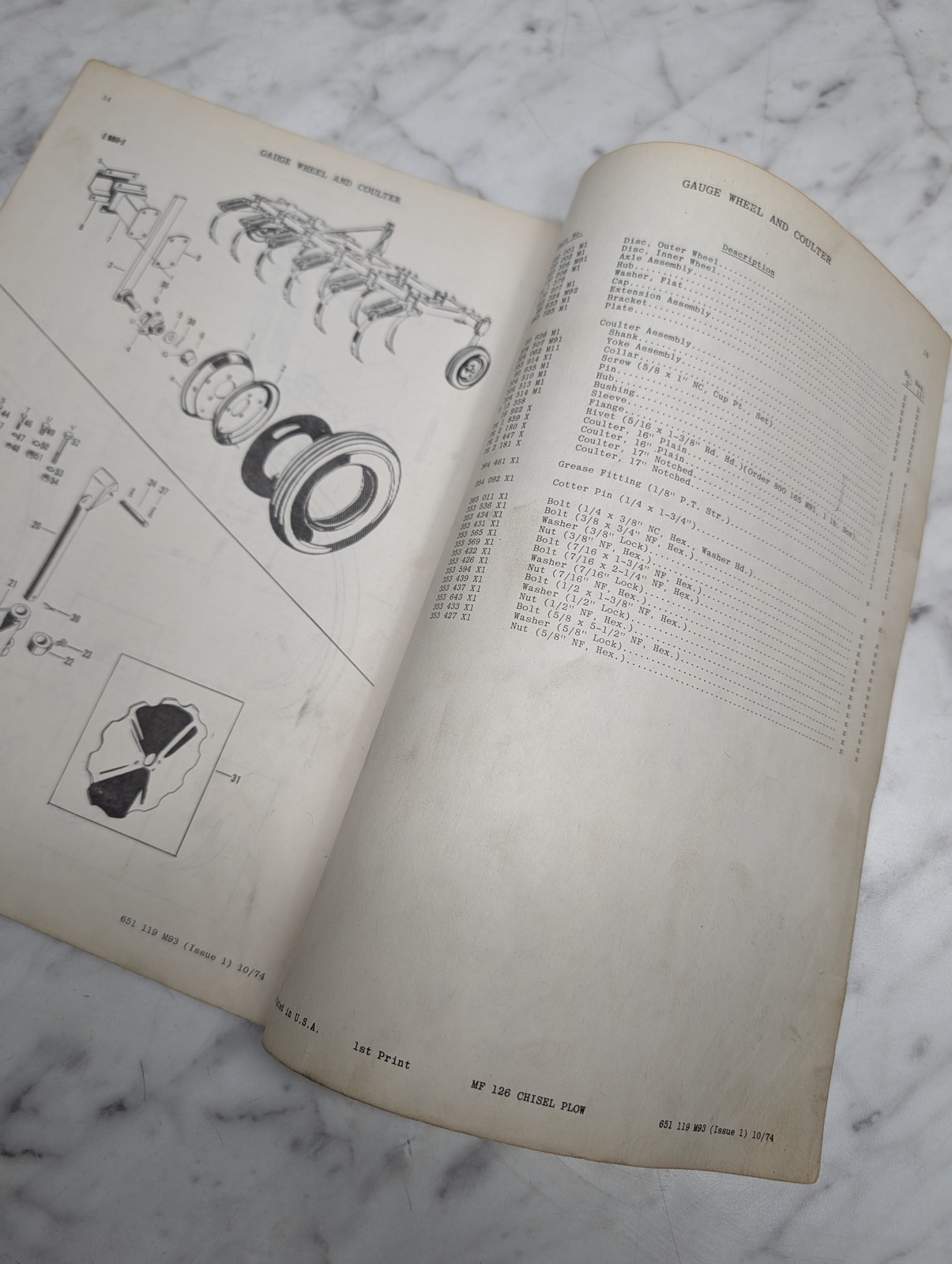 Massey Ferguson Mf 126 Chisel Plow Form No 651 119 M93 Parts Book Manual