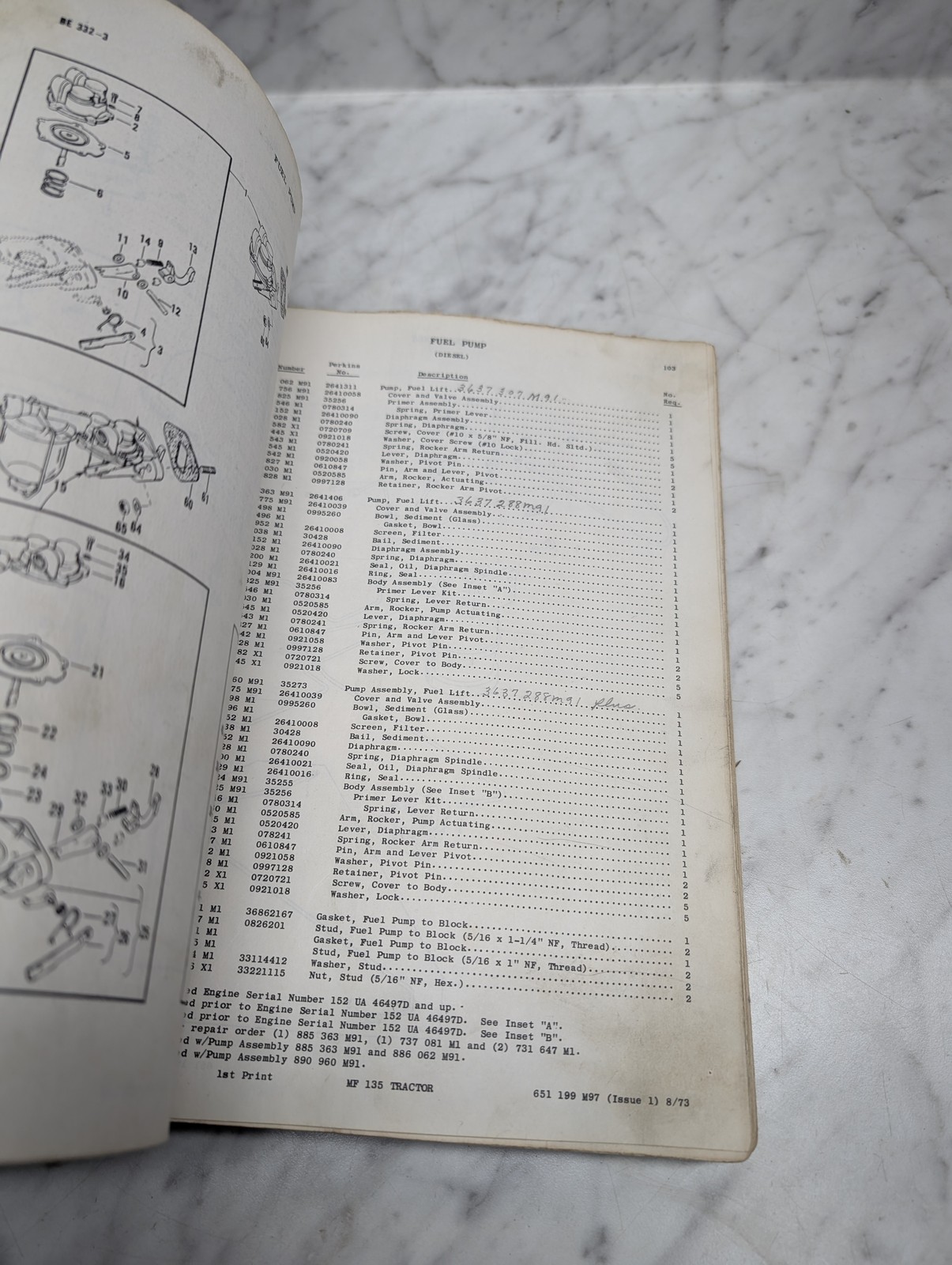 Massey Ferguson Mf 135 Tractor 651 199 Parts Book Manual List Catalog