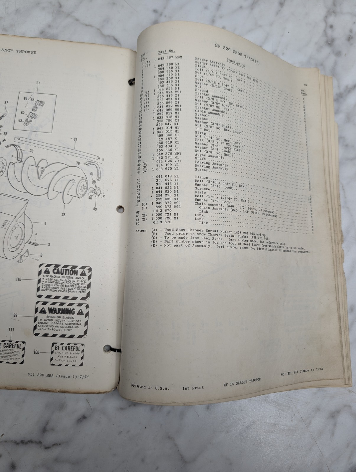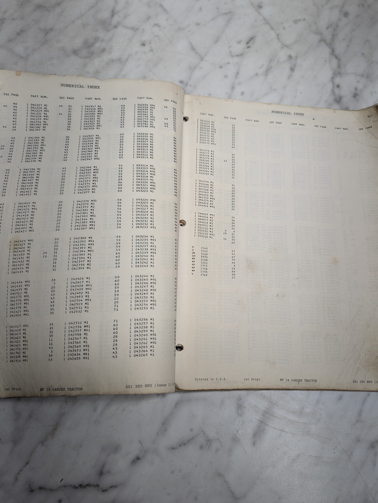 Massey Ferguson Mf 14 Garden Tractor 651 320 M93 Parts Book Manual Catalog List