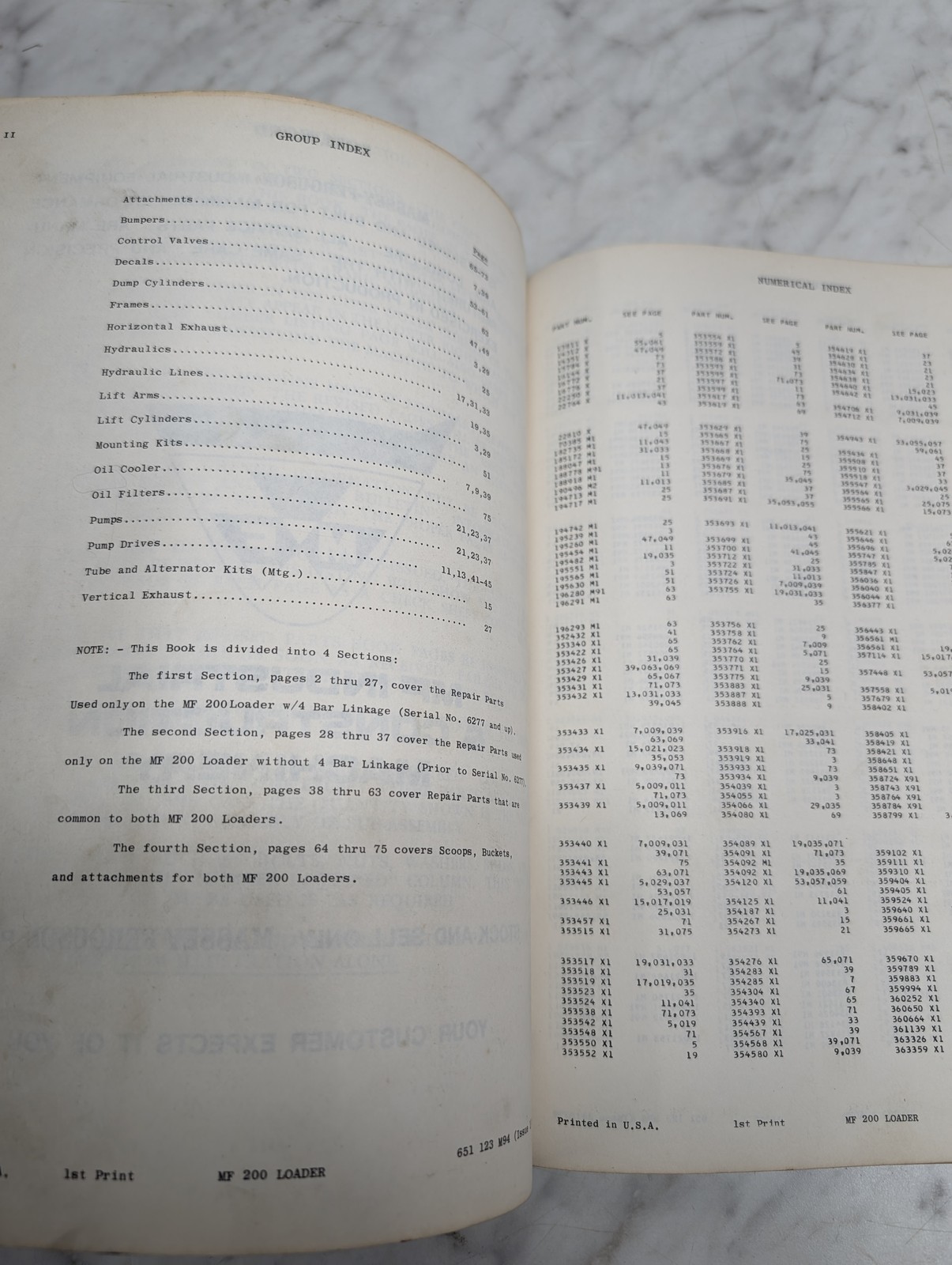 Massey Ferguson Mf 200 Loader Form No 651 123 M94 Parts Book Manual List Catalog