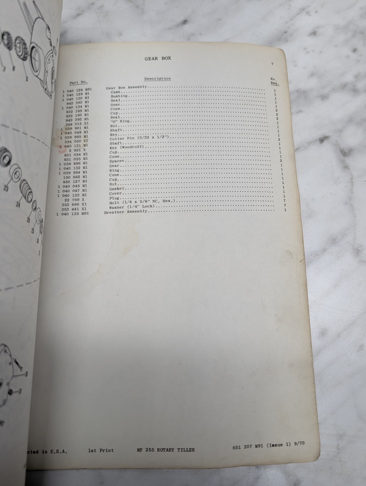 Massey Ferguson Mf 255 Rotary Tiller Form No 651 307 M91 Parts Book Manual