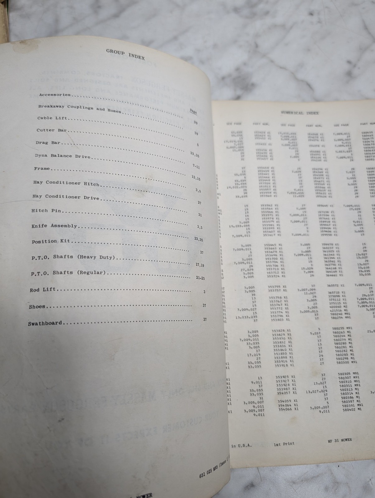 Massey Ferguson Mf 31 Mower Form 651 025 M95 Parts Book Manual List Catalog