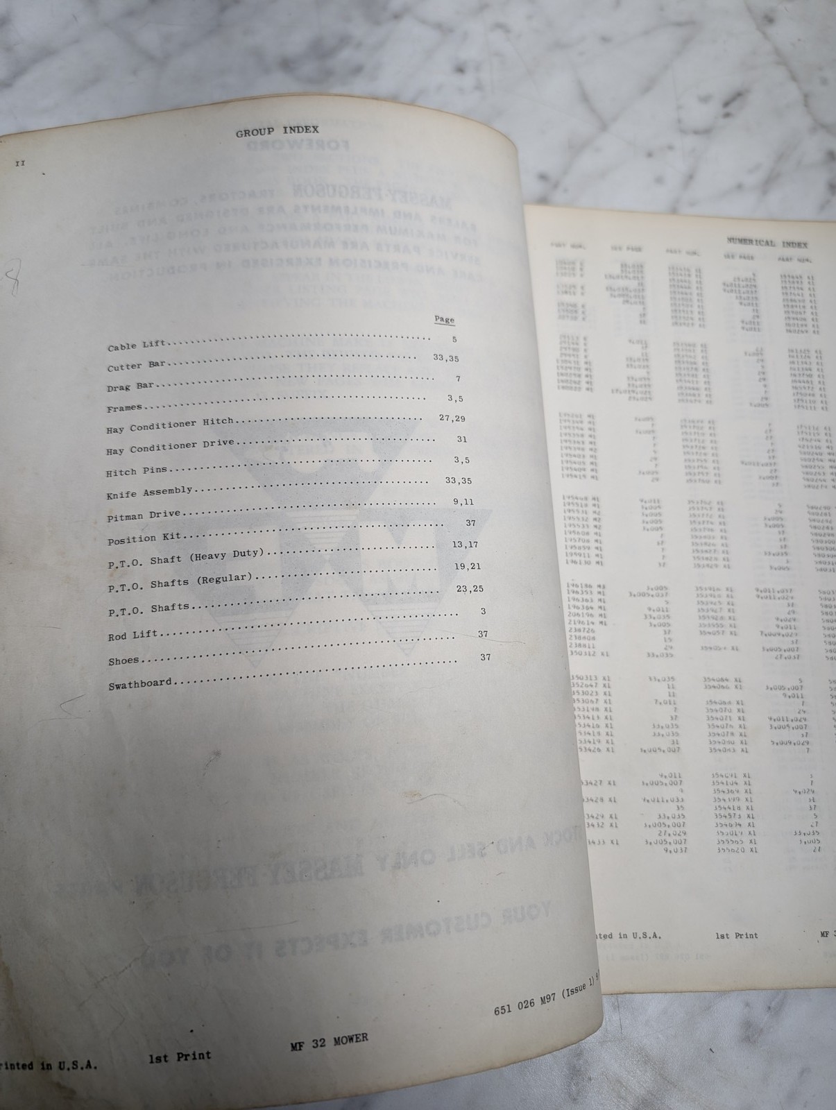 Massey Ferguson Mf 32 Mower Pitman Drive Form No 651 026 M97 Parts Book Manual