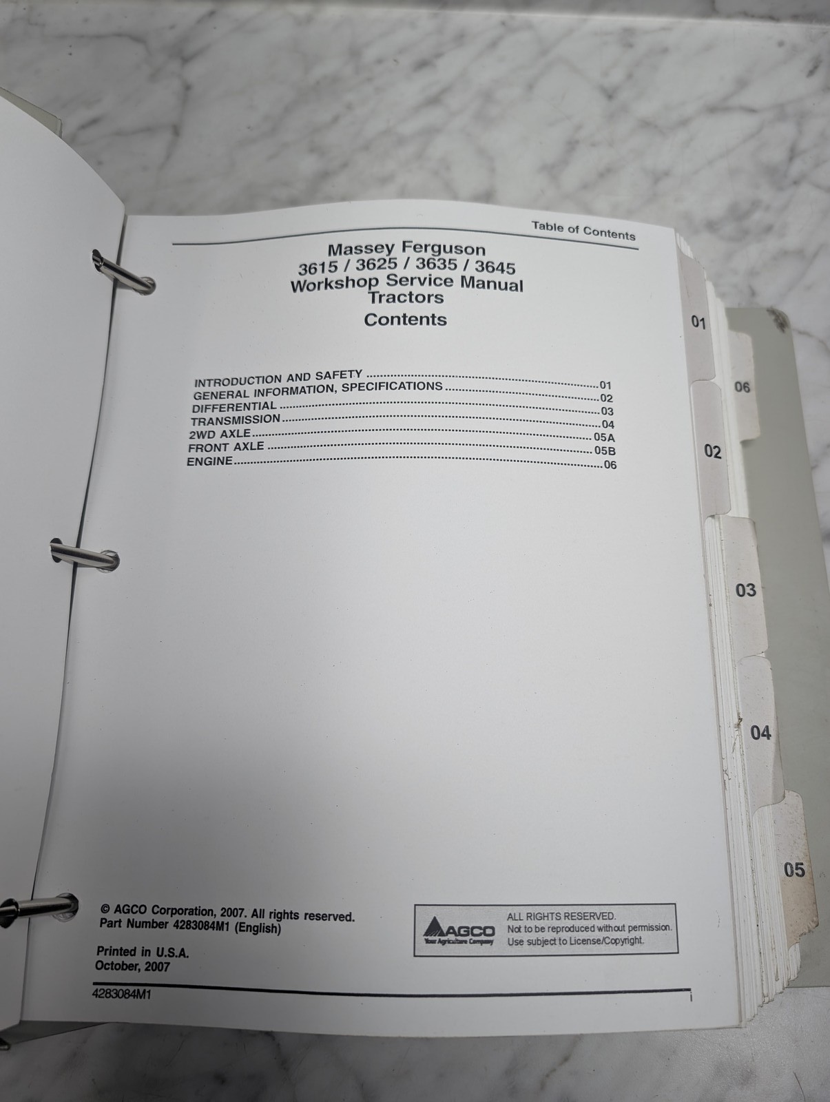 Massey Ferguson Mf 3615 3625 Tractors 4283084M1 Service Manual 2007 3645 3635