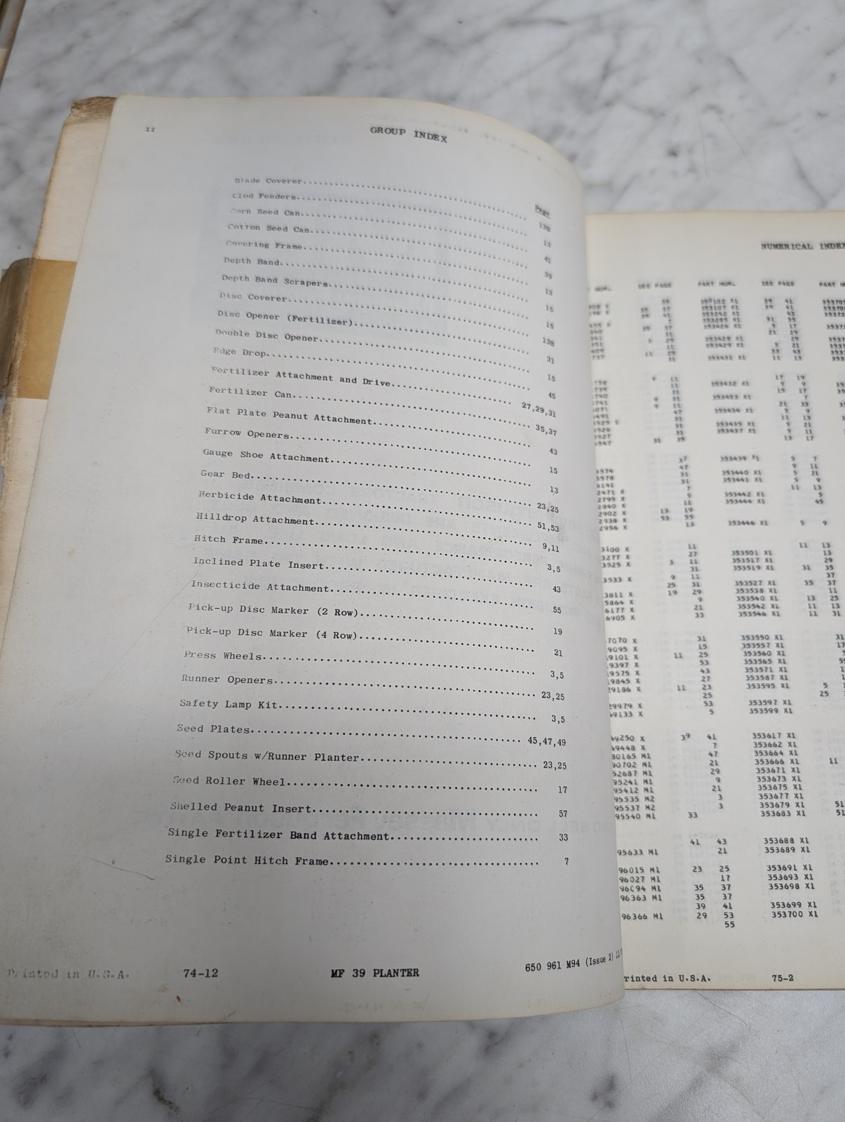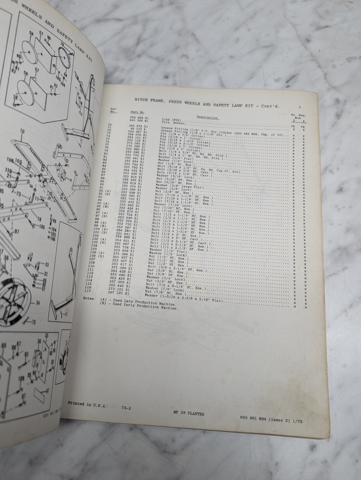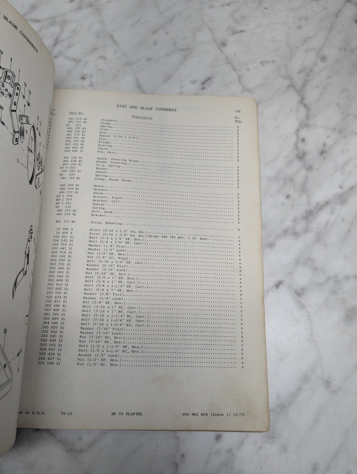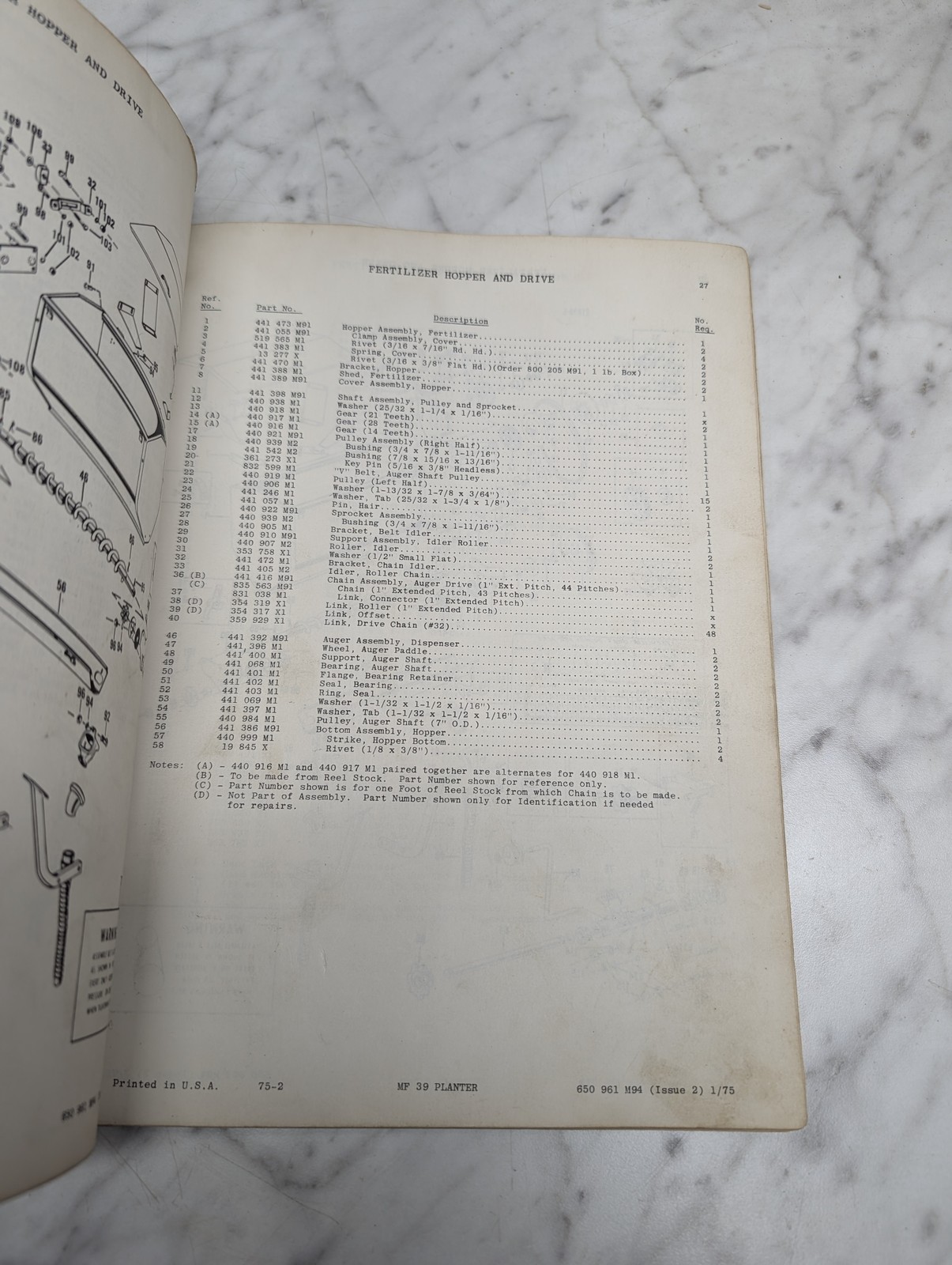 Massey Ferguson Mf 39 Planter Form No 650 961 M94 Parts Book Manual List Catalog