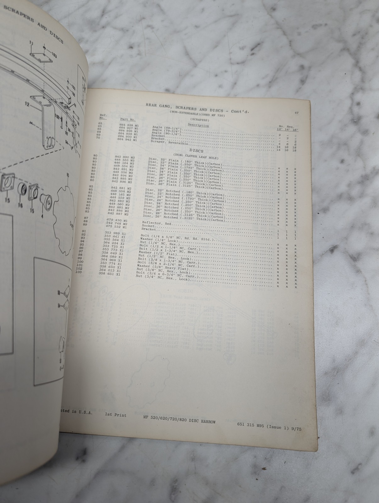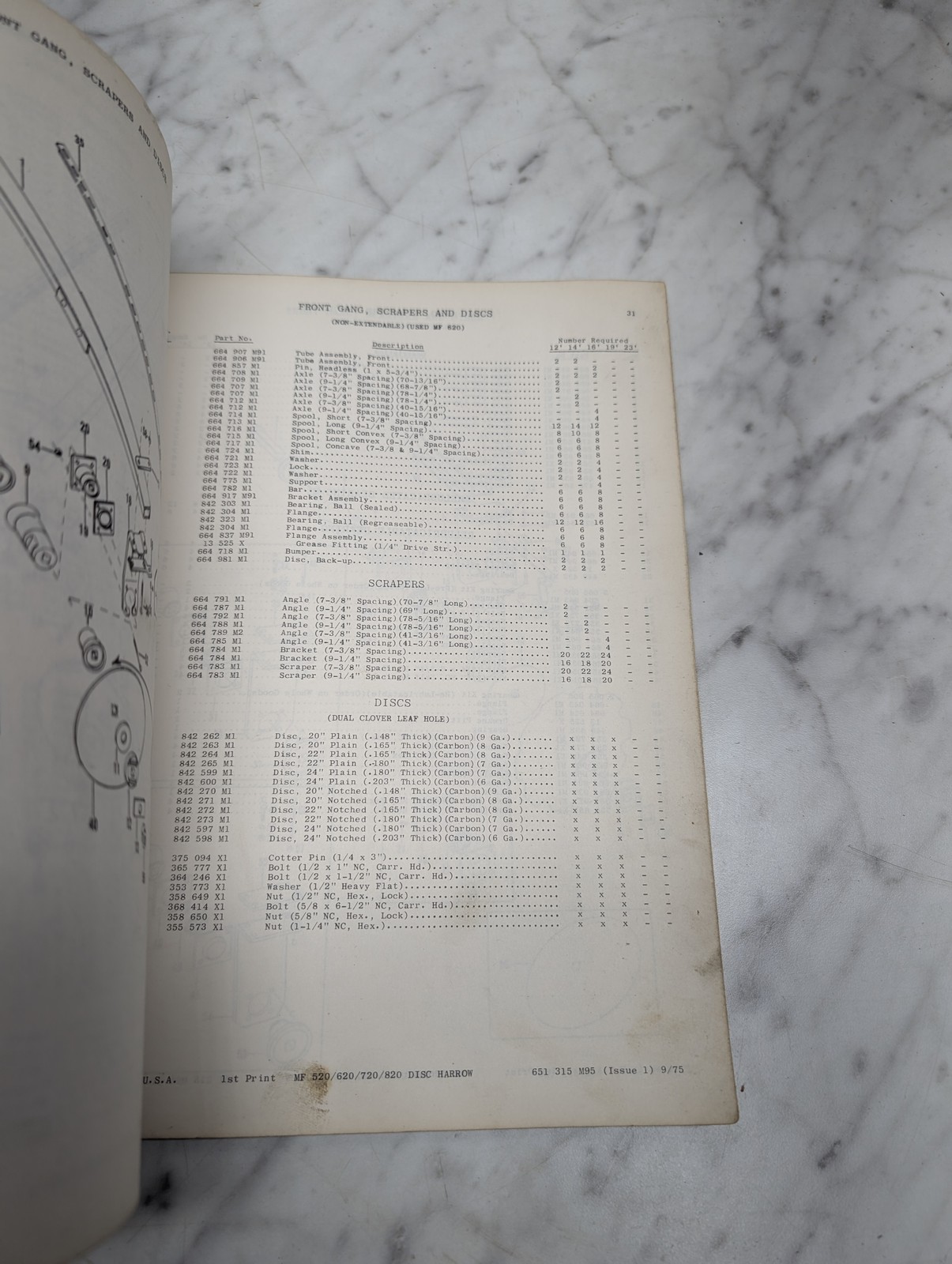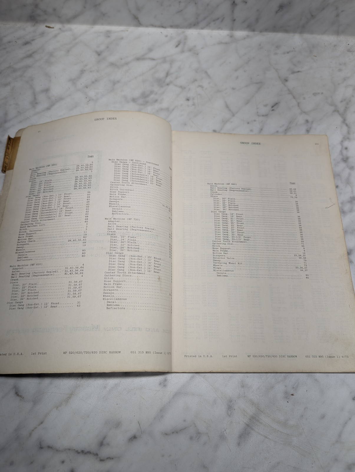 Massey Ferguson Mf 520 620 Disc Harrow Form No 651 315 M95 Parts Book Manual