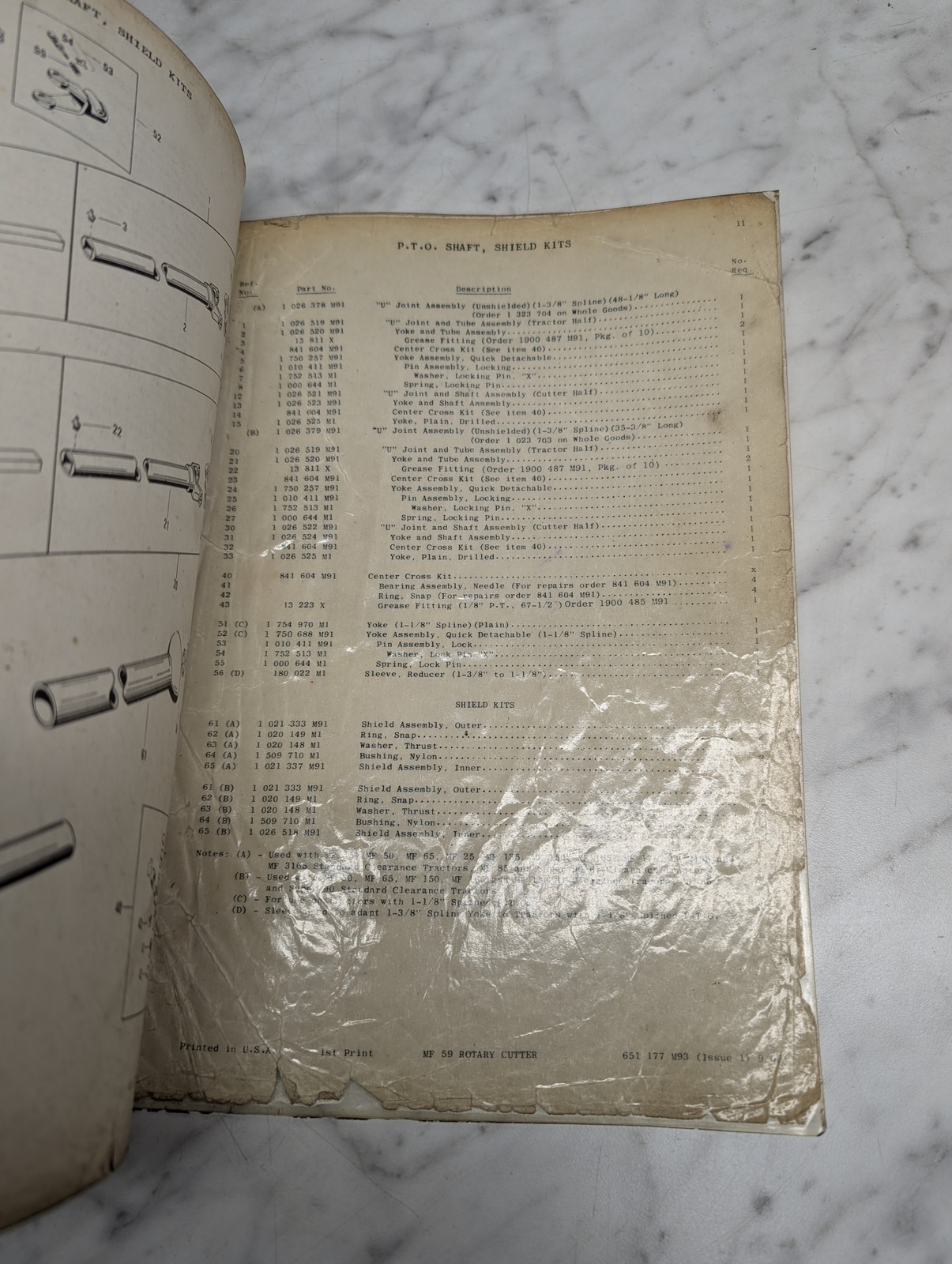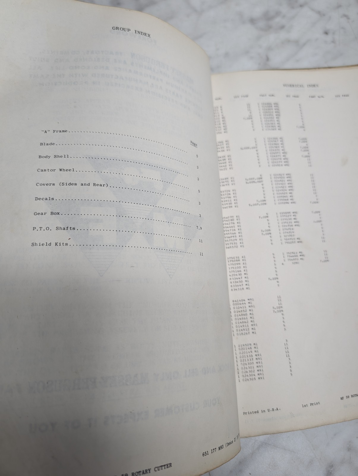 Massey Ferguson Mf 59 Rotary Cutter Form No 651 177 M93 Parts Book Manual List