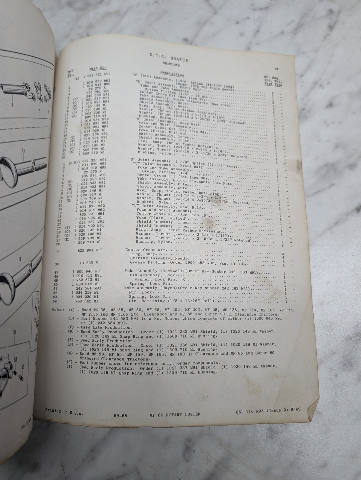 Massey Ferguson Mf 60 Rotary Cutter Parts Book Manual List Catalog