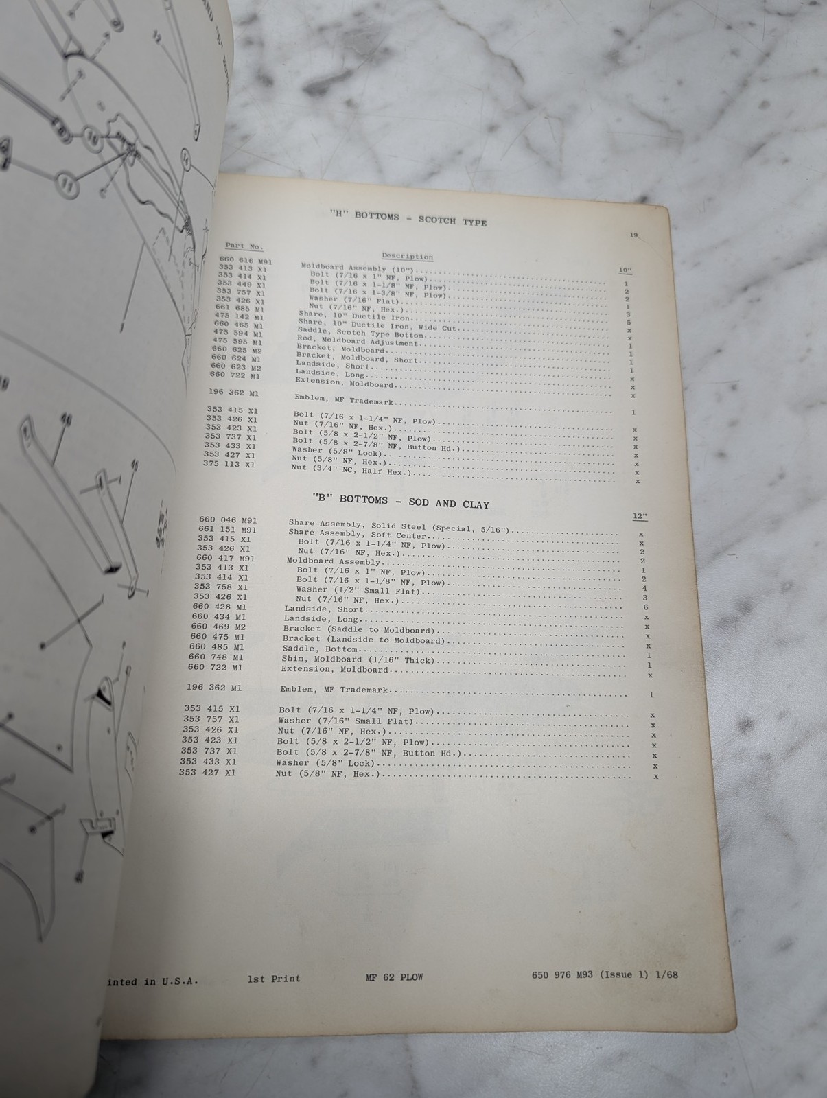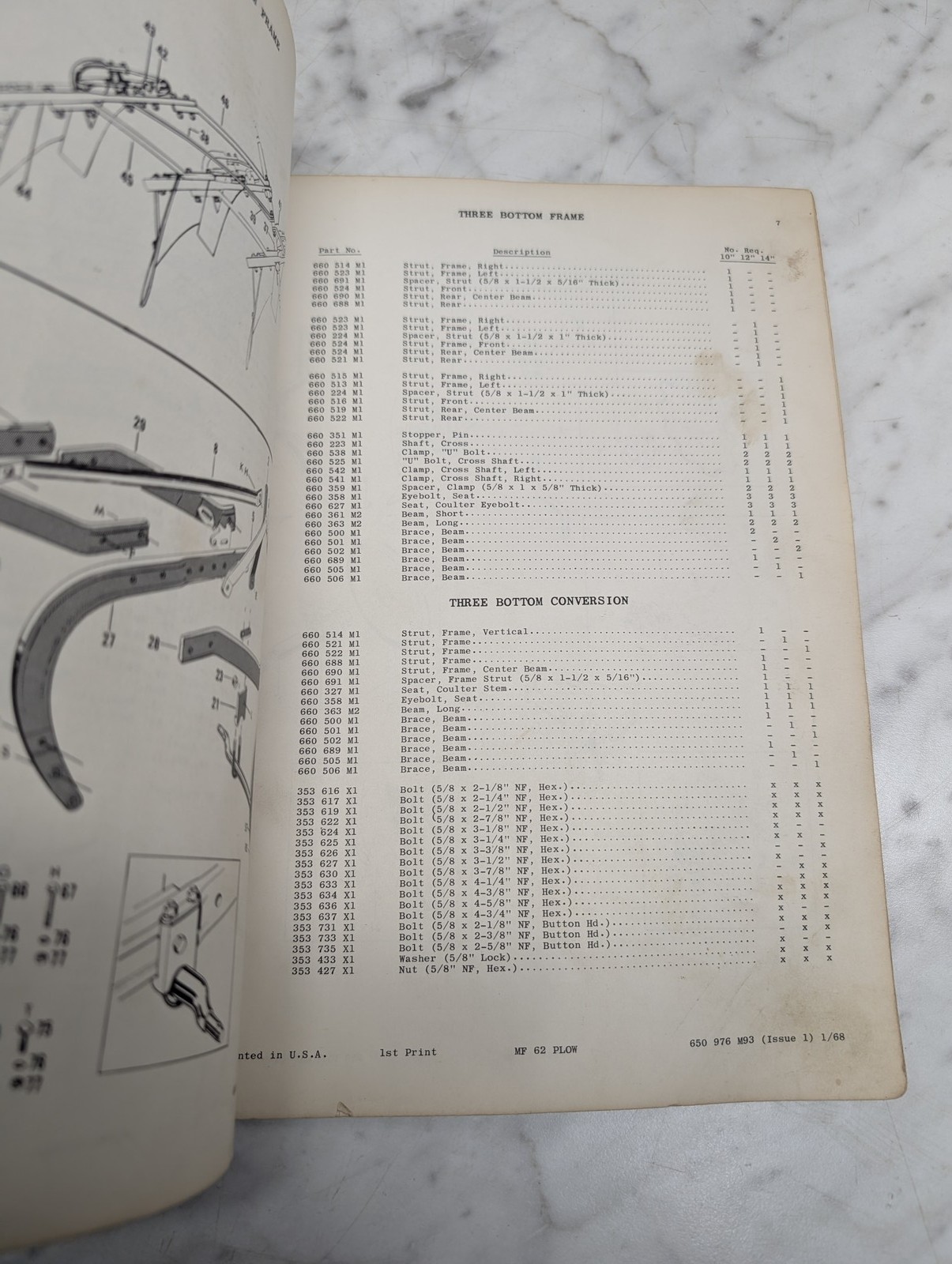 Massey Ferguson Mf 62 Moldboard Plow Form No 650 976 M93 Parts Book List